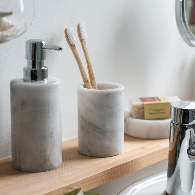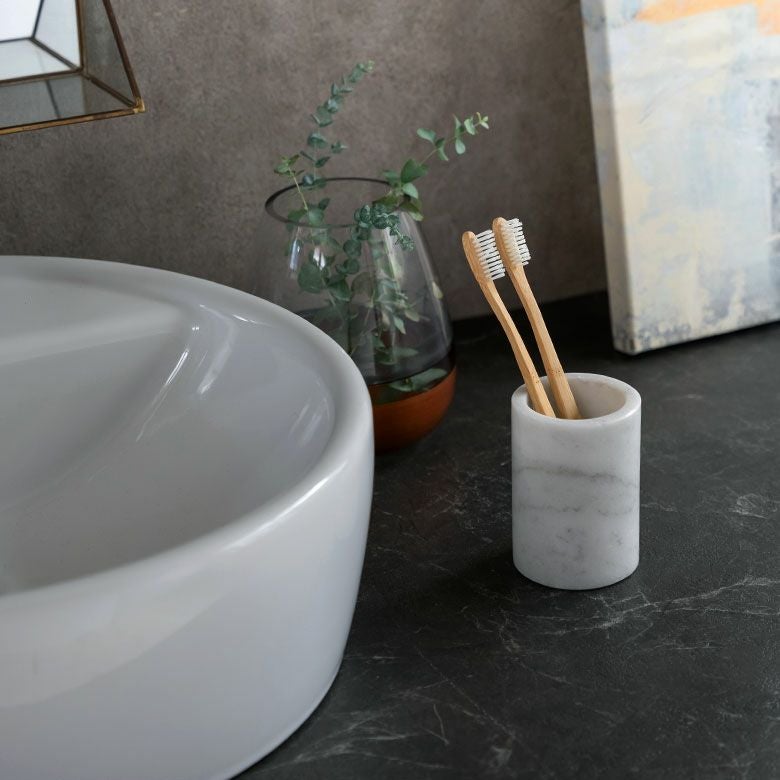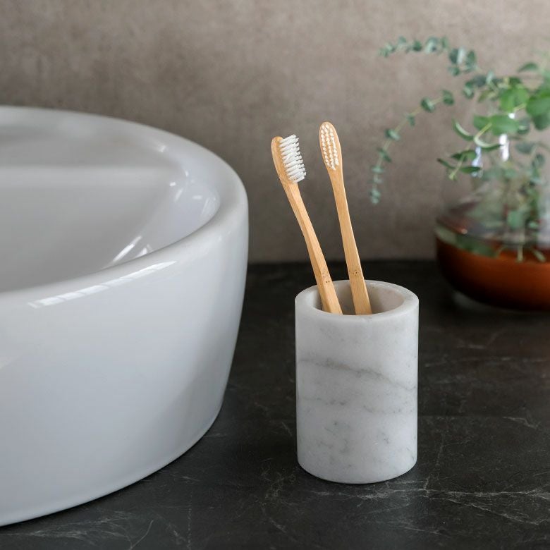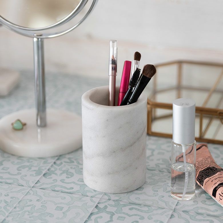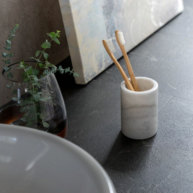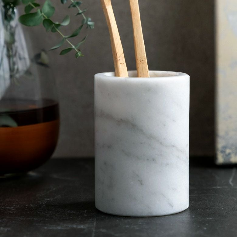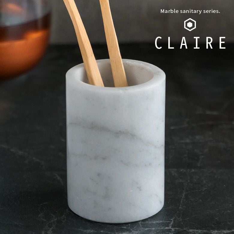 タンブラー コップ カップ ペンスタンド ペン立て メイクブラシ 歯ブラシスタンド ホルダー 筒形 天然大理石 マーブル模様 ホワイト クレア [66732]【 歯ブラシ立て 歯ブラシホルダー 歯ブラシたて歯ブラシ入れ ハブラシスタンド 歯ブラシ置き スタンド 容器 おしゃれ アジアン 雑貨 アジアン雑貨 ホテルライク ホテル仕様 】
