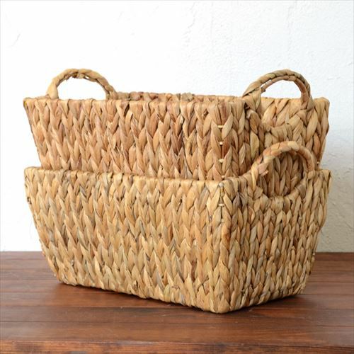 カゴ 籠バスケット スクエアバスケット 収納かご マガジンラック かごバスケット 持ち手付き スクエア型 深型 Sサイズ ウォーターヒヤシンス製 幅約37cm 高さ約20cm [va51144] 【 かご バスケット 籠 カゴ バスケット収納 収納 収納ボックス 収納かご 雑貨 ヒヤシンスバスケット おしゃれ アジアン 雑貨 アジアン雑貨 北欧 】