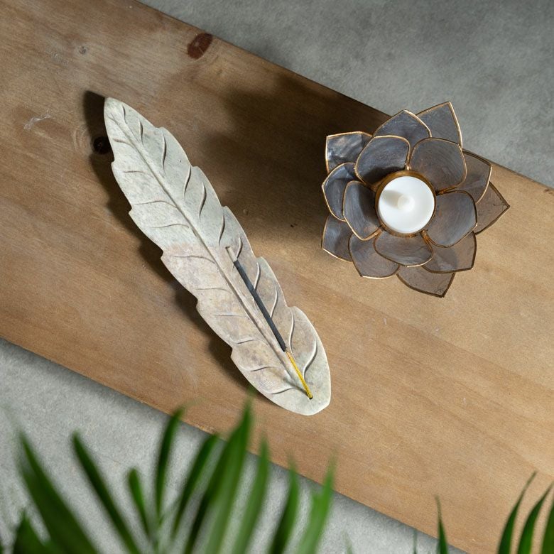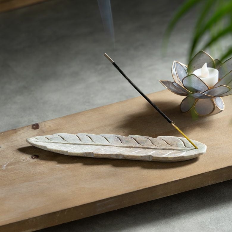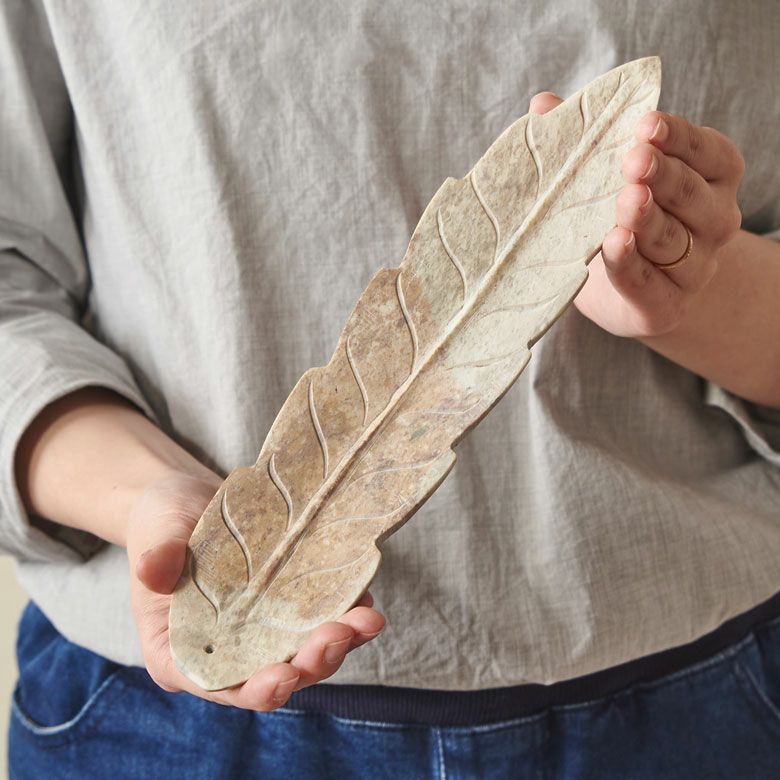 線香炉 お香入れ 線香立て 受け皿 オブジェ トレイ インテリア お香立て お香皿 リーフ 葉 ソープストーン 石製 横置 インド 製 約 W 25 × D 6 × H 1.2 cm お香スタンド インセンスホルダー インセンススタンド インセンストレイ お香トレイ おしゃれ エスニック アジアン雑貨 アジアン 雑貨 インド インド雑貨 バリ島 バリ雑貨 [34544]
