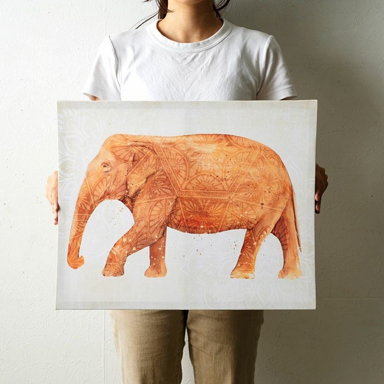油絵 風 玄関 寝室 動物アート インドインテリア アートパネル 象 イラスト テラコッタ 横長 約 W 50cm D 40cm H 2.7cm キャンバスアート アートポスター 壁飾り 壁掛け 絵画 ウォールデコレーション ぞう ゾウ アフリカン サバンナ おしゃれ モダン 北欧 韓国 リゾート アジアン 雑貨 アジアン雑貨 [67117]