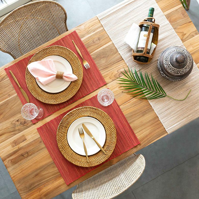 お得な4枚セット☆天然素材を使ったアジアンランチョンマット。いつもの食卓でレストランの雰囲気を味わえるバリ島の人気アジアン雑貨 【4枚セット】ウォーターヒヤシンスのアジアンランチョンマット[レッド][set-10818]【テーブルマット ランチマット プレースマット プレイスマット テーブルウェア ランチョン キッチンマット バリ アジア雑貨 アジアン雑貨】