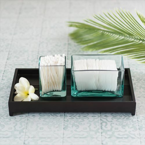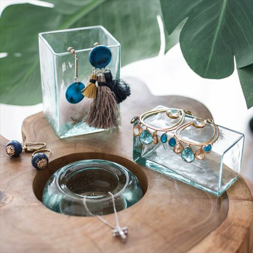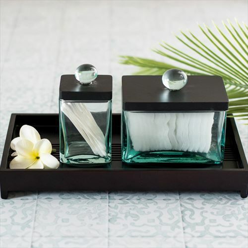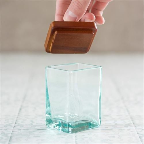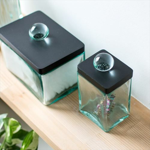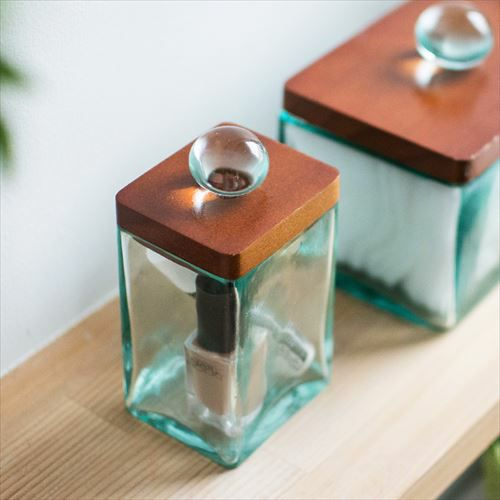 爽やかなガラスケースとウッド製フタのセット 【2色展開】ガラスケース フタ セット ウッド ガラス 取っ手付き set-6630【ガラス ガラスケース フタ ウッド セット 6×5cm 雑貨 コットンケース アメニティ バスルーム 洗面所 化粧品 収納 木製】