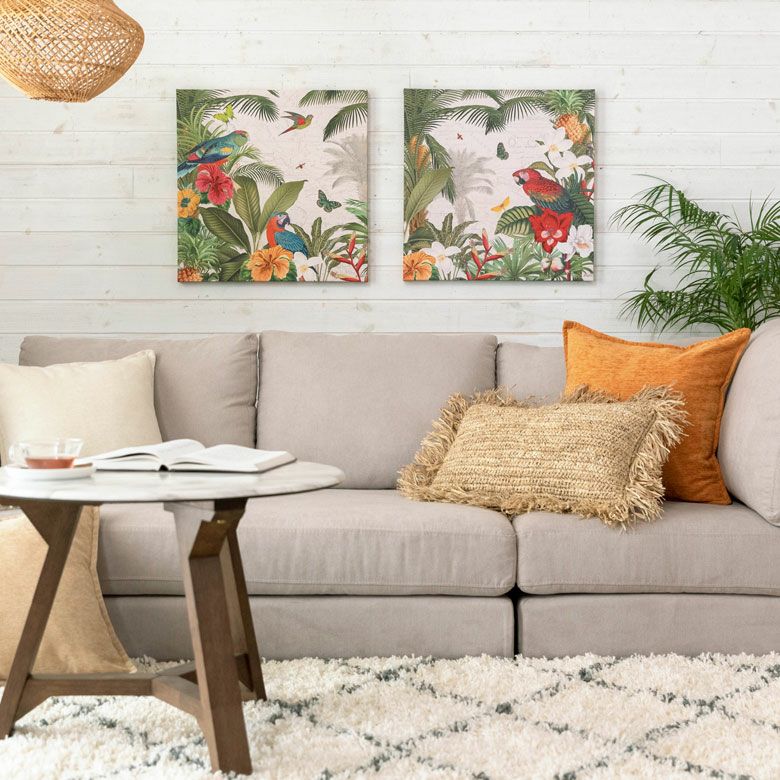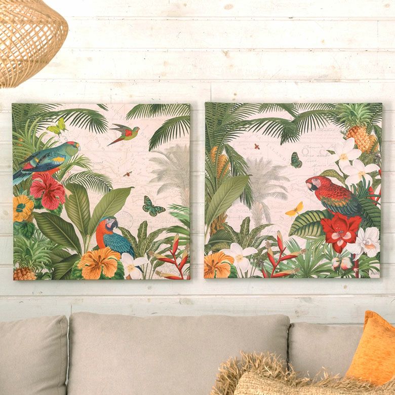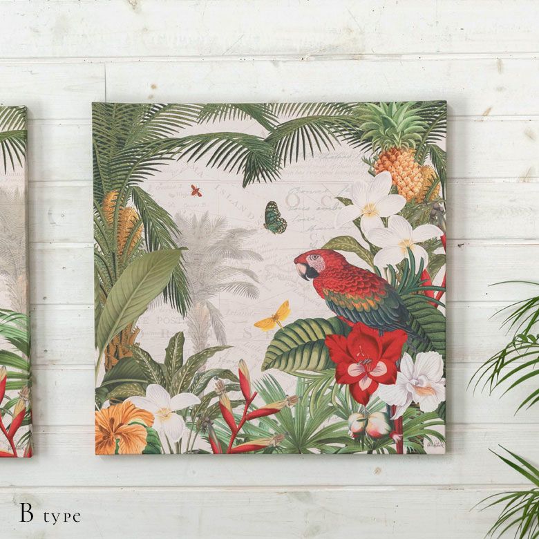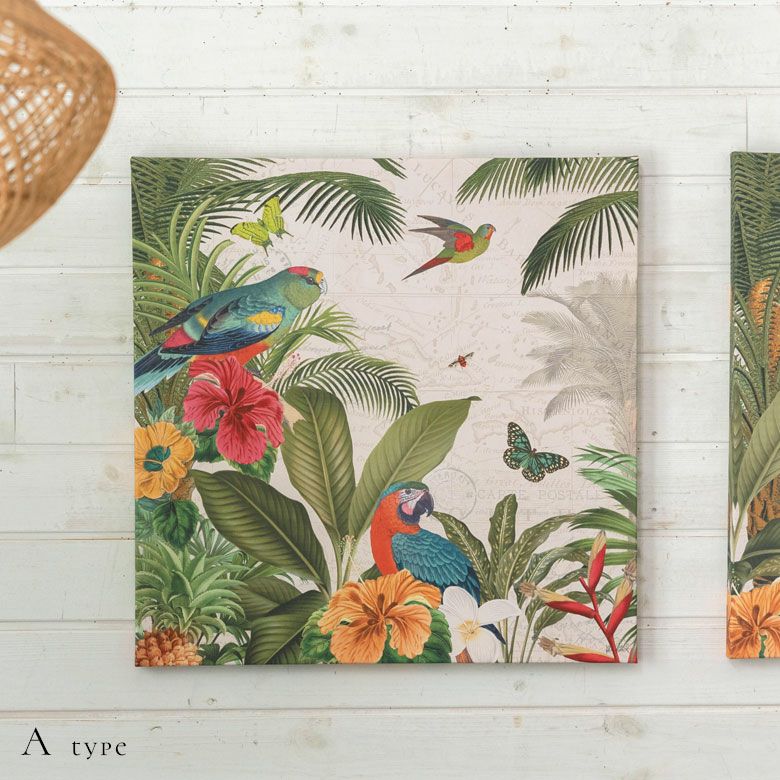 鳥 花 植物 玄関 リビング ウォールアート ウォール インテリア アートフレーム アートパネル トロピカル アニマル 南国 W 50cm D 50cm H 2.7cm アート キャンバス セット [67004]【 アートポスター 絵画 ピクチャー 壁掛け ウォールデコレーション プリント 北欧 おしゃれ リゾート エスニック アジアン雑貨 バリ島 アジア 】
