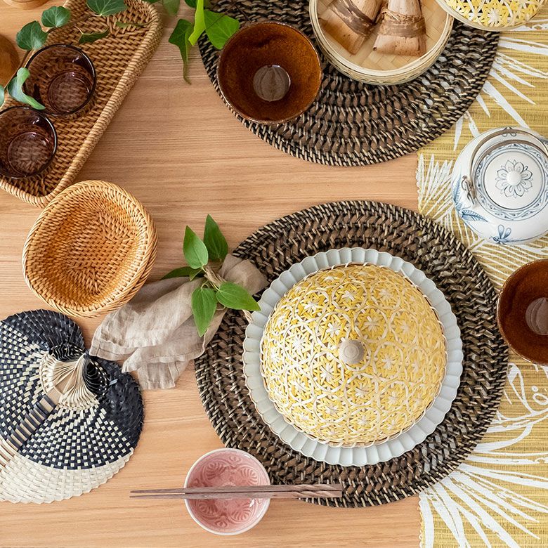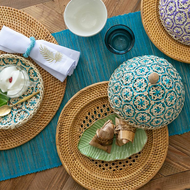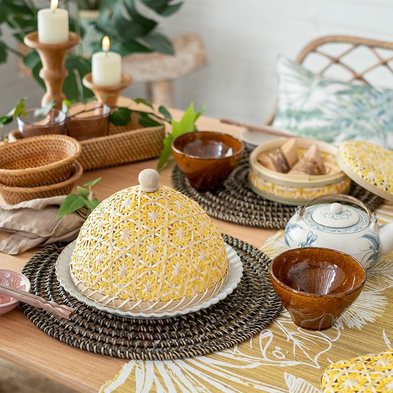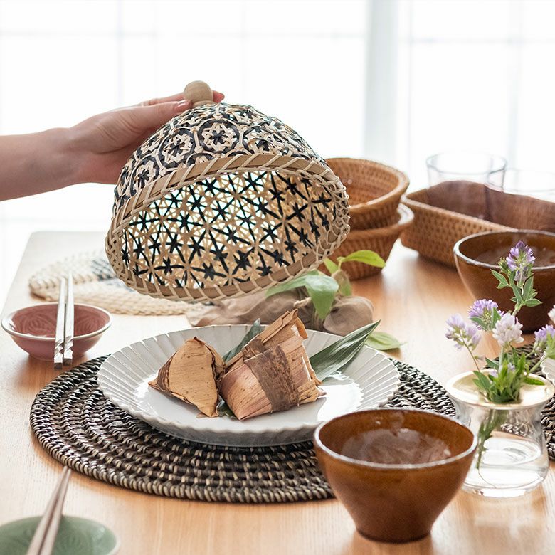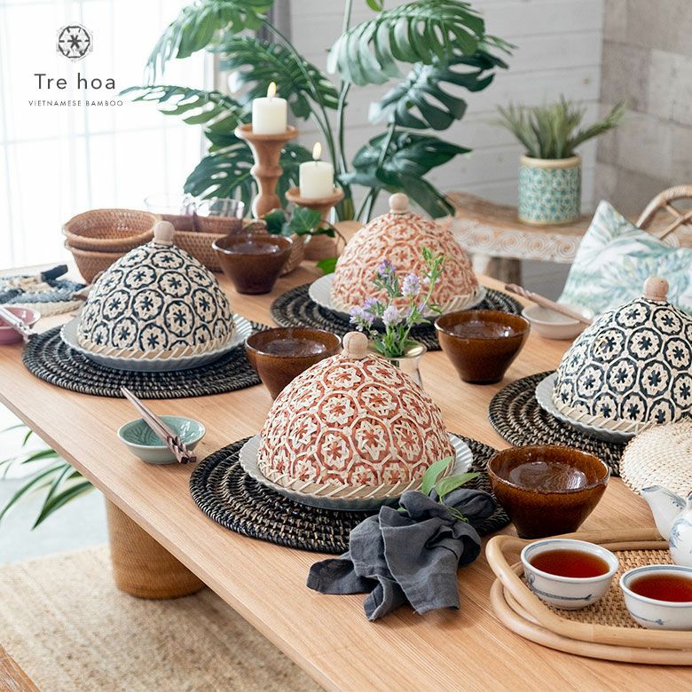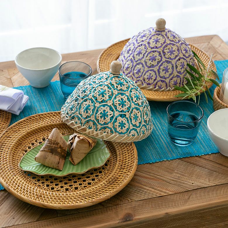 食卓カバー ポプリカバー 食品カバー 竹細工 ケース フードカバー バンブー カバー 直径 約 20cm ブラウン ブラック アイボリー ライトブルー パープル [51311]【 竹 収納 花柄 花編み 円 サークル 丸 デコレーション パーティー レトロ おしゃれ カラフル ベトナム エスニック アジアン 雑貨 チェーホア Tre hoa 】