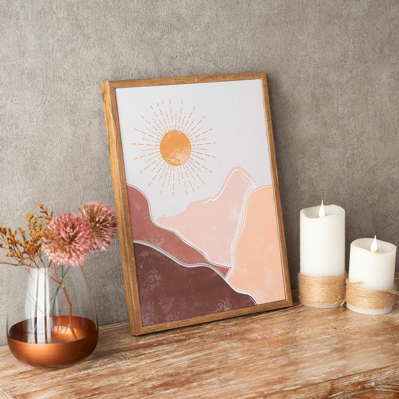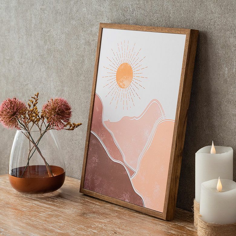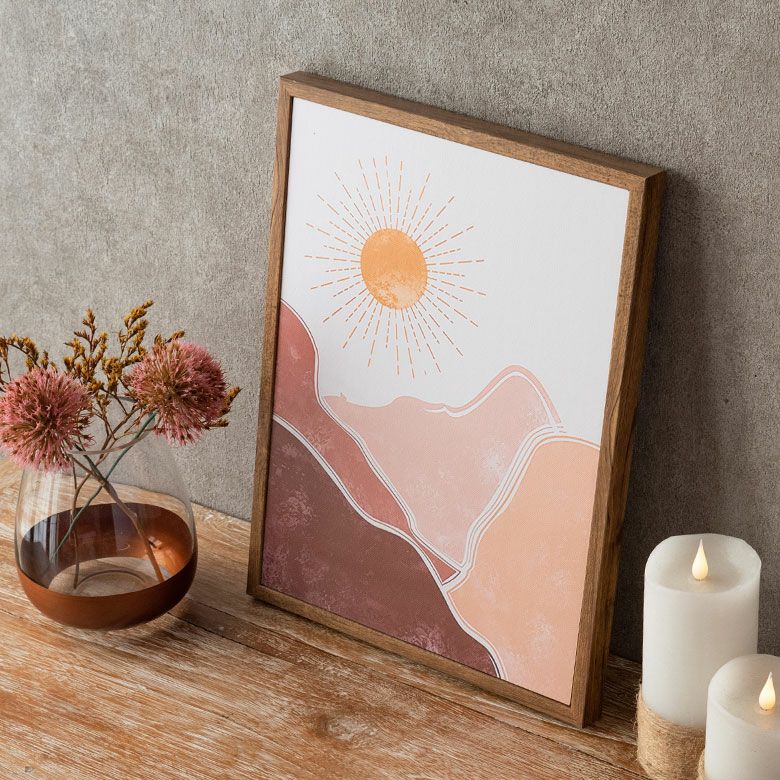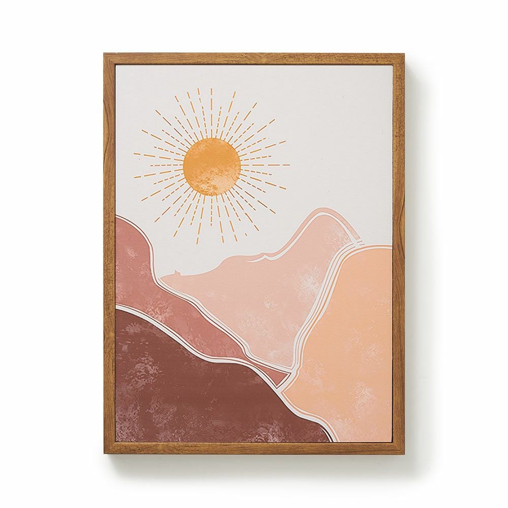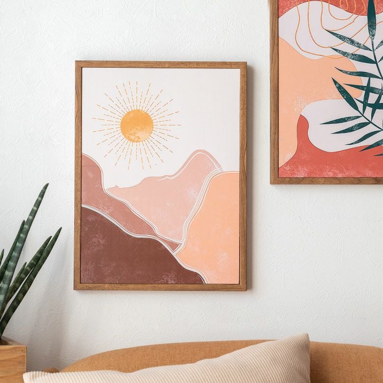 キャンバス アート モダンアート 軽量 縦長 ナチュラル ベージュ アートパネル 山と太陽 フレーム付き 海外インテリア 幅30×高さ40cm [67082]【 壁掛けアート ポスター ファブリックパネル アートポスター インテリアアートパネル 玄関 リビング おしゃれ 北欧 スカンジナビア モダン アジアン雑貨 アジアン 雑貨 】
