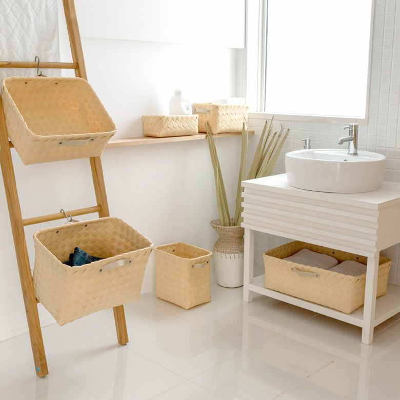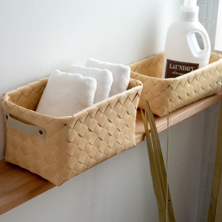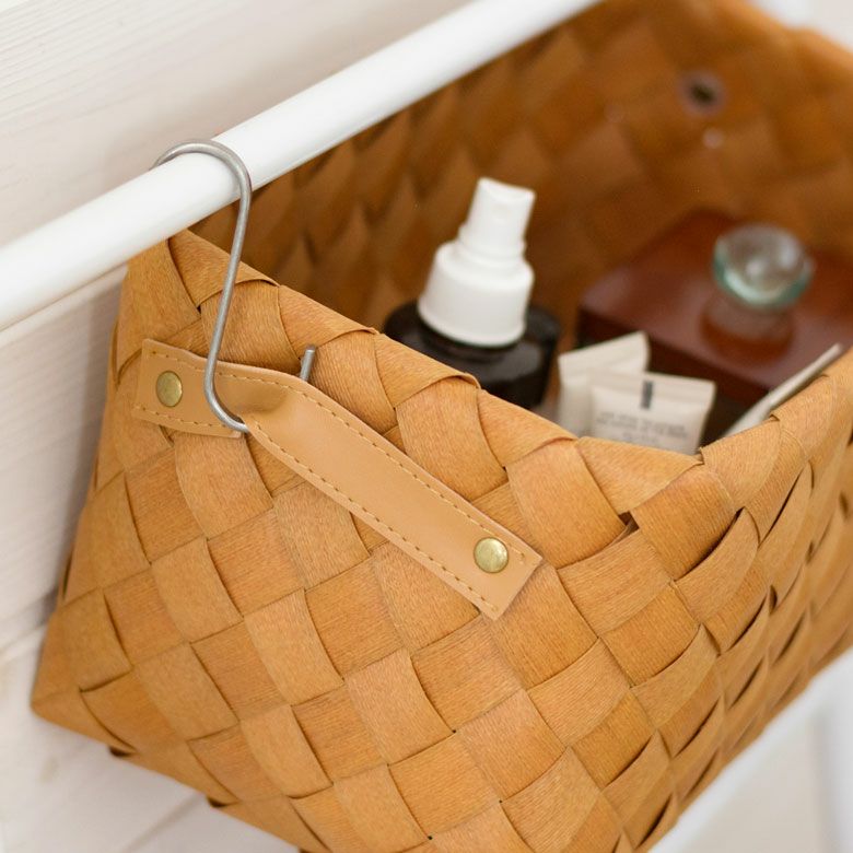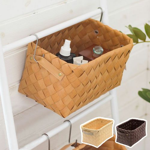 かごバスケット キッチン収納 収納ケース 小物入れ アジアン雑貨 かご バスケット 白樺風 持ち手付き 18×30cm 浅型 ポリエチレン製 ノルディックバスケット ウッドチップ 白樺かご風 カゴ 収納ボックス 収納バスケット カラーボックス対応 インナーボックス おしゃれ 北欧 フィンランド [cl-c-6]