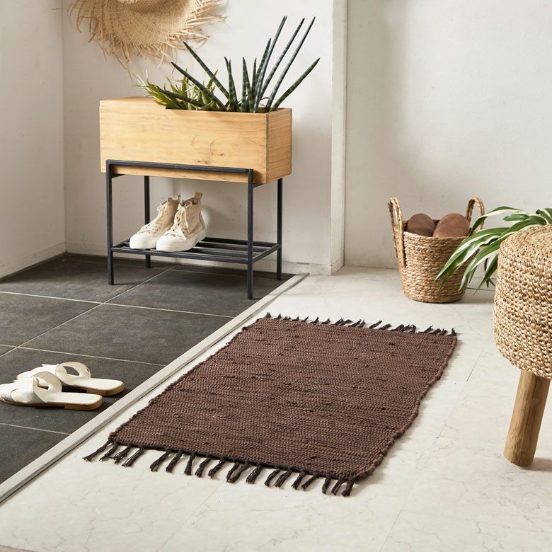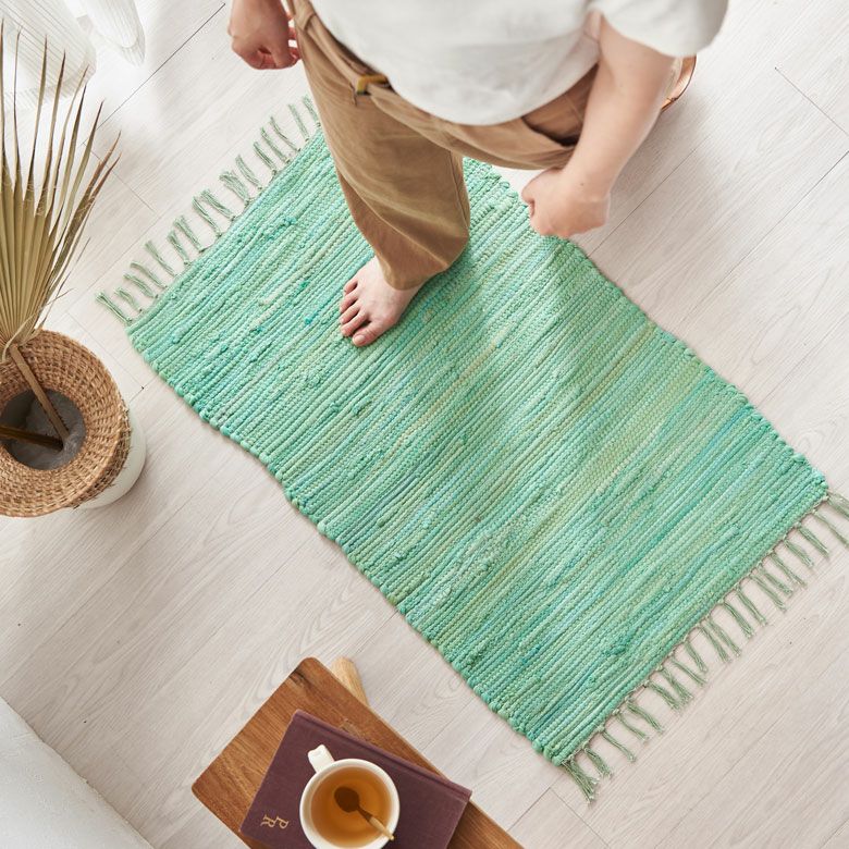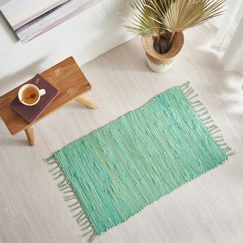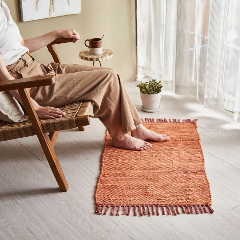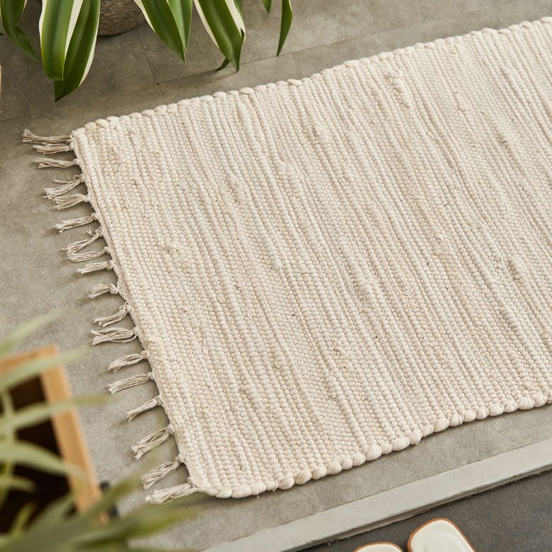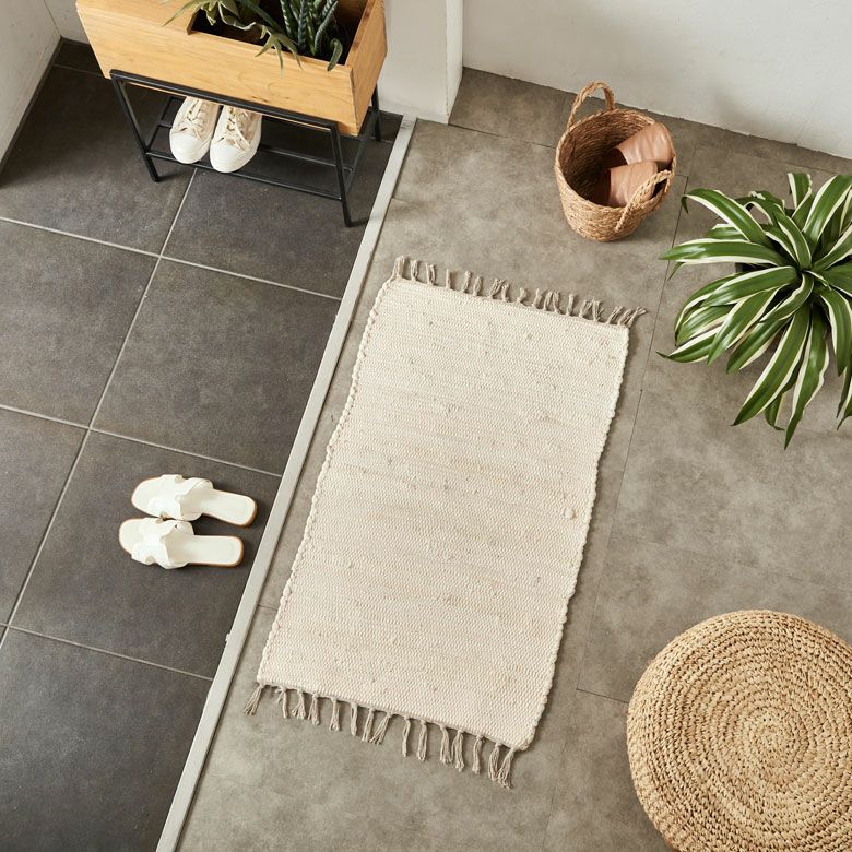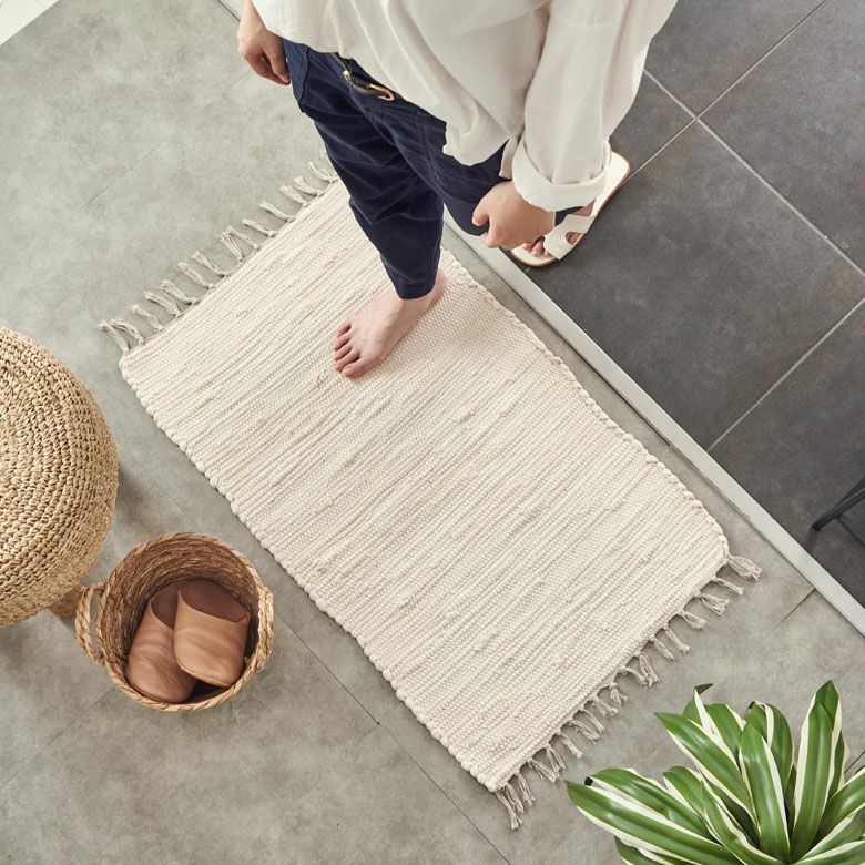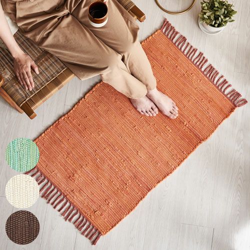 コーナーラグ 手織り 屋内用 オールシーズン 春 夏 秋 冬 風水 玄関マット フリンジ 無地 インド製 コットン100% 約 50×80cm ラグ ラグマット 夏用 コットンラグ 室内 キリム風ラグ アクセントラグ アウトドア キャンプ リビング 寝室 おしゃれ 北欧 綿100% アジアン 雑貨 BOHO モロッカン モロッコ [34526]