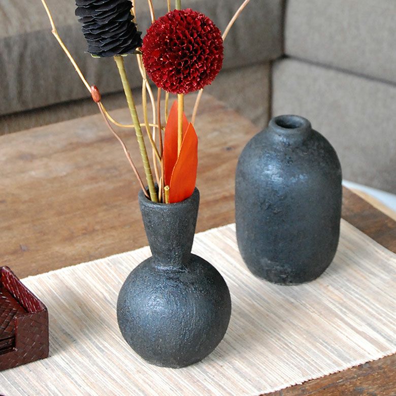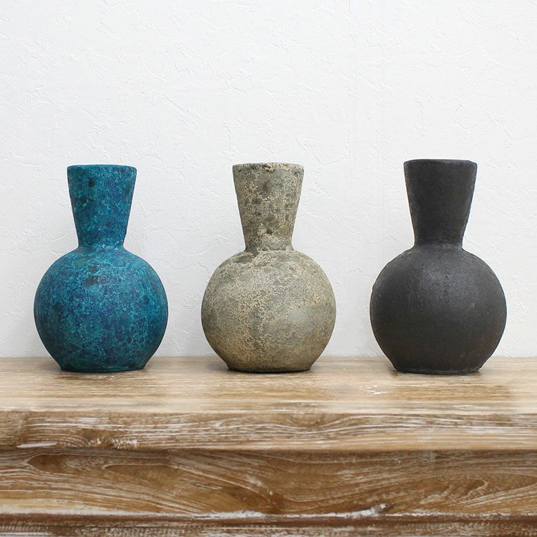 アンティークのような質感でオブジェとしても飾れるアジアンモダンな花器 アンティーク調アジアン フラワーベース 3型3色展開[11556-11557-11558]【花瓶 花器 陶器 焼物 アンティーク 一輪挿し 花入れ オブジェ アジアン雑貨 ナチュラル 置物 置き物 エスニック バリ雑貨 インテリア雑貨】