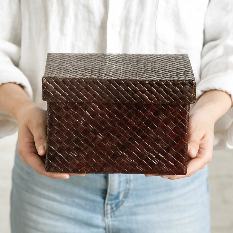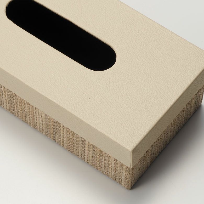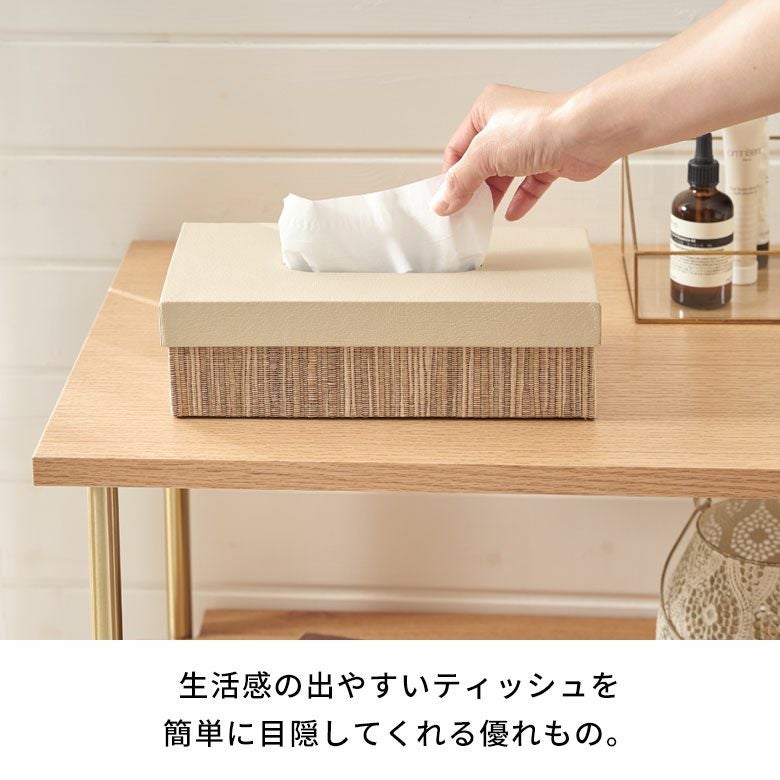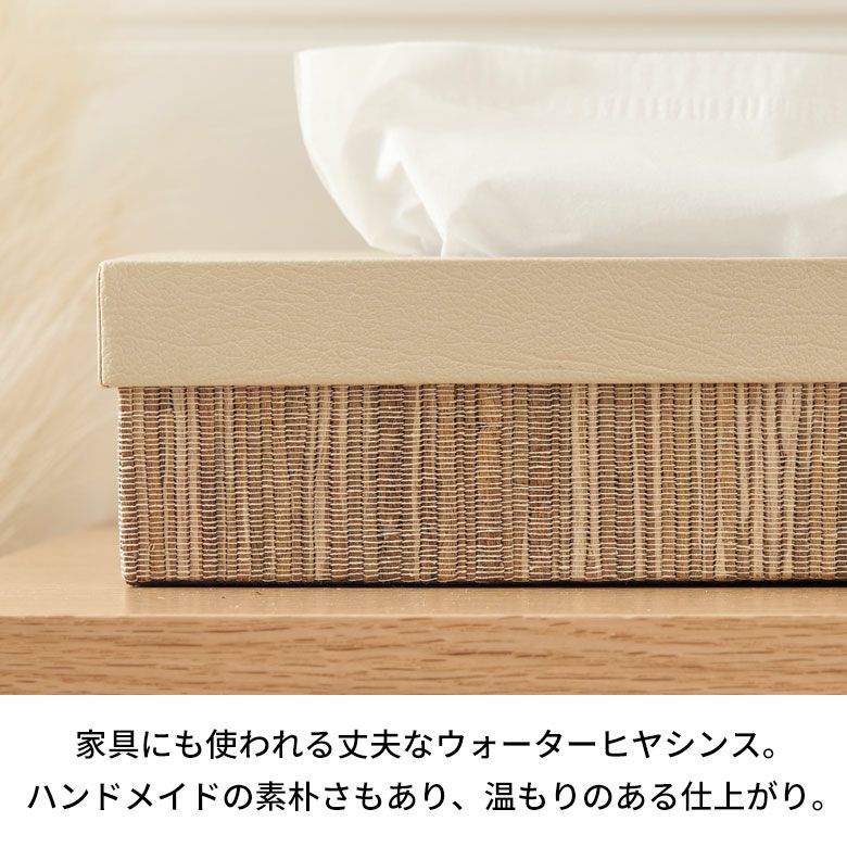 ティッシュホルダー ハンドメイド リゾート ダイニング リビング 寝室 エスニック ホルダー 車 箱 ナプキン ナフキン 台所 キッチン 店舗 インテリア 引っ越し 祝い ギフト プレゼント ティッシュケース ふた付 ティッシュボックス ティッシュボックスカバー ティッシュカバー ウォーターヒヤシンス フェイクレザー ホワイト W 27cm D 13.5cm H 7.5cm ティッシュ ボックス ケース カバー おしゃれ 北欧 雑貨 バリ アジアン [14043]