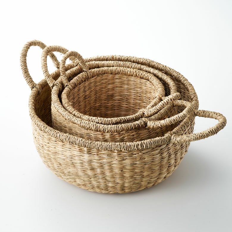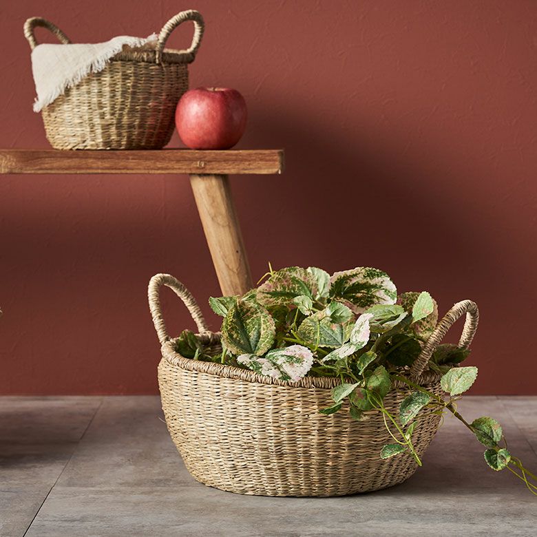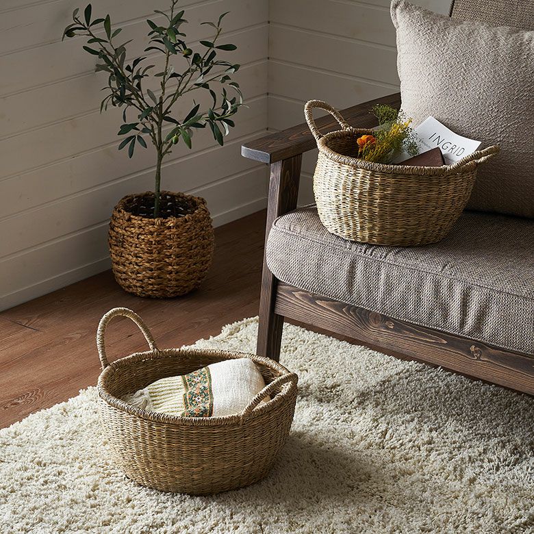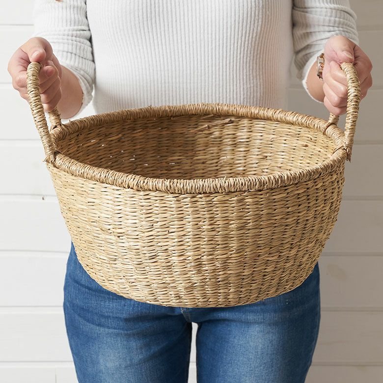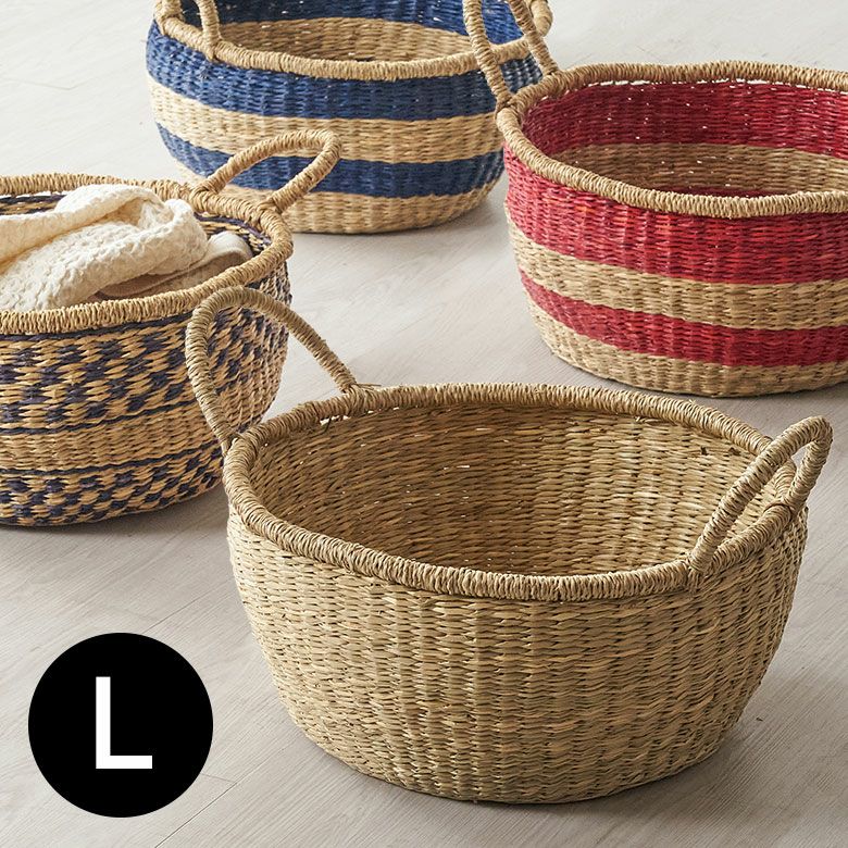 自立 ラウンド 小物収納 小物入れ 整理整頓 取っ手 ハンドル リビング収納 おもちゃ入れ ランドリー 洗濯 脱衣 リビング ダイニング キッチン 玄関 子供部屋 洗面所 プレゼント ギフト バスケット シーグラス 持ち手付き Lサイズ 約 W 34cm D 34cm H 17cm ナチュラル レッド ブルー かごバスケット 収納 天然素材 かご 籠 丸 円形 丸型 カゴ 小物入れ 収納ケース 収納かご 見せる収納 インテリア おしゃれ 北欧 雑貨 アジアン アジアン雑貨 [l-vn5]