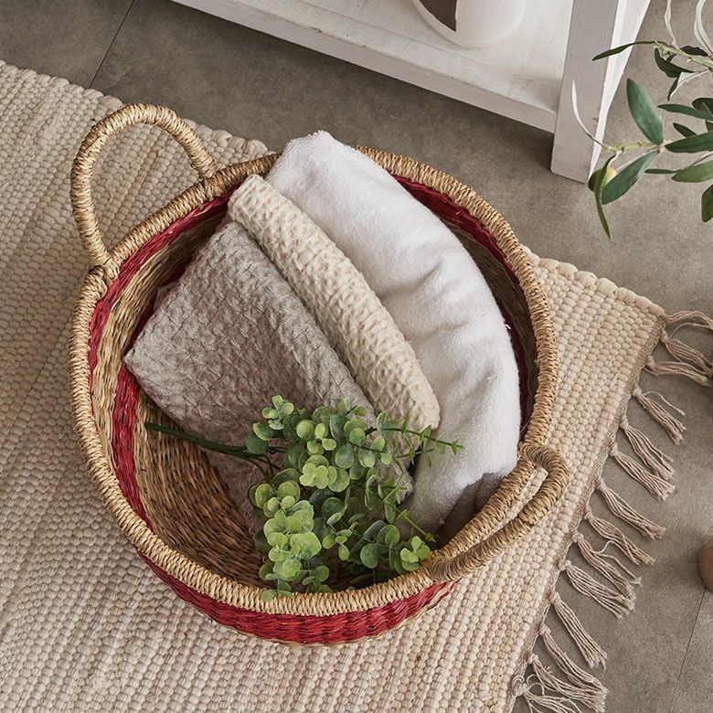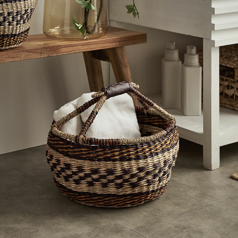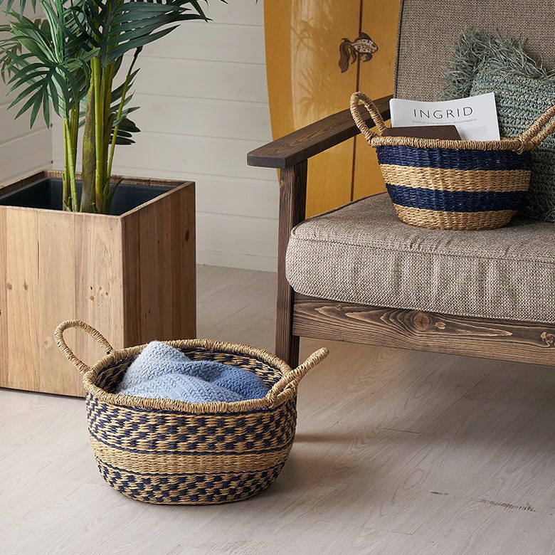 自立 ラウンド 小物収納 小物入れ 整理整頓 取っ手 ハンドル リビング収納 おもちゃ入れ ランドリー 洗濯 脱衣 リビング ダイニング キッチン 玄関 子供部屋 洗面所 プレゼント ギフト バスケット シーグラス 持ち手付き Mサイズ 約 W 35cm D 35cm H 21cm ナチュラル レッド ブラウン ストライプ ボーダー かごバスケット 収納 天然素材 かご 籠 丸 円形 丸型 カゴ 収納ケース 見せる収納 インテリア おしゃれ 北欧 雑貨 アジアン アジアン雑貨 [m-vn505]