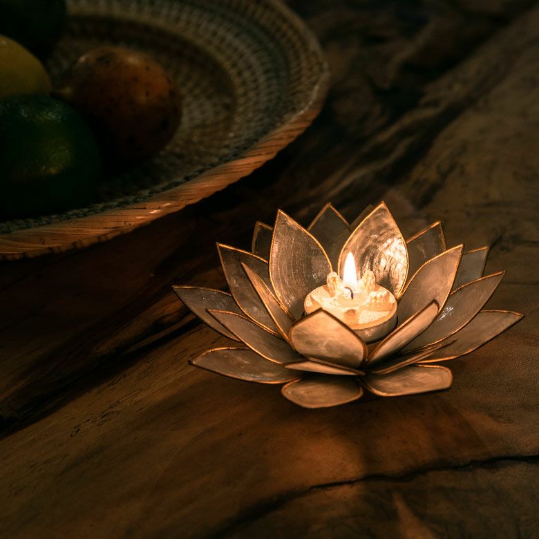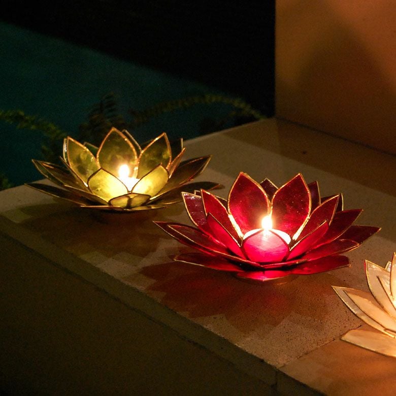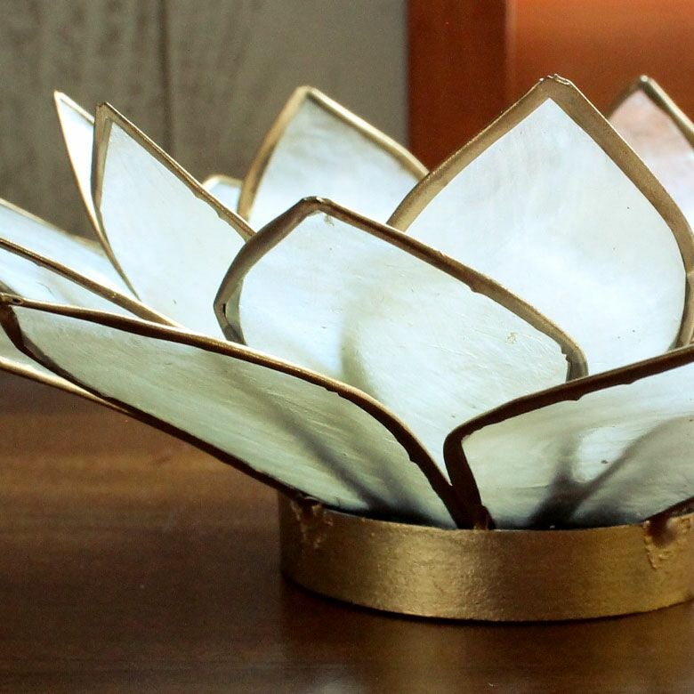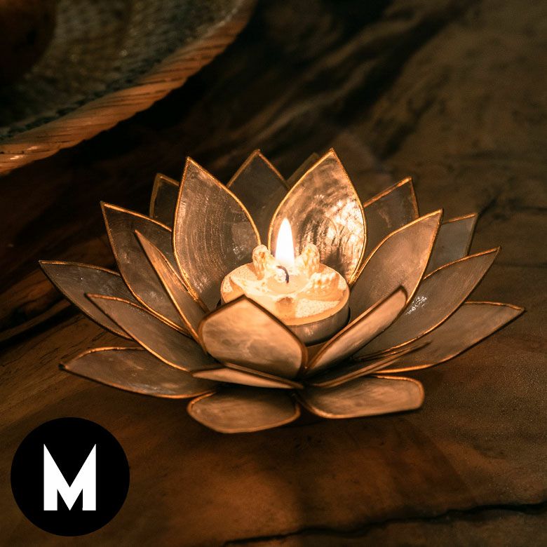 【ティーライトキャンドル付き】バリ島の人気アジアン雑貨 カピスシェルでできた蓮の花のようなキャンドルホルダーMサイズ 3色展開[m-11497 m-11498 m-11499]【貝殻 ろうそく立て キャンドル立て キャンドルスタンド キャンドルランプ キャンドルランタン バリ 雑貨 アジアン雑貨 キャンドル インテリア バリ雑貨】