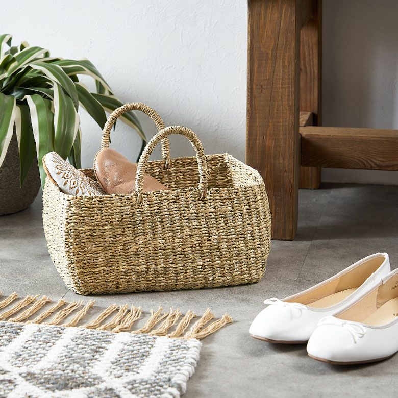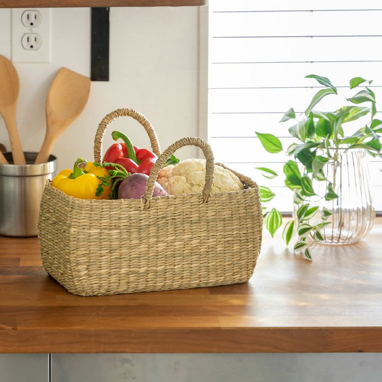 カゴバスケット 手作り スリッパ収納 ランチバック ナチュラル トートバスケット バスケット カゴトート シーグラス 収納 収納バスケット 籠 カゴ 収納ケース アクセサリーケース ナチュラル雑貨 インテリア かご ピクニック バッグ 収納カゴ 持ち手 トートバッグ 天然素材 おしゃれ かわいい 北欧 アジアン雑貨 アジアン 雑貨 [vn50576]