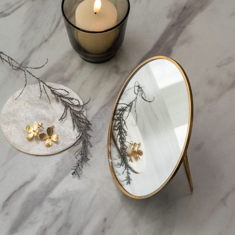 立て鏡 コスメミラー 真鍮 フレーム 円型 小さめ 化粧鏡 かわいい メイクアップミラー シンプル 軽量 インテリア雑貨 アンティーク風 シャビ― ガーリー ギフト プレゼント スタンドミラー 丸型 真鍮フレーム 卓上ミラー 鏡 かがみ カガミ ミラー 卓上鏡 アンティーク調 コンパクト 丸型 化粧鏡 おしゃれ 可愛い メイクアップミラー シンプル 軽量 インテリア雑貨 アジア雑貨 アジアン 雑貨 66713