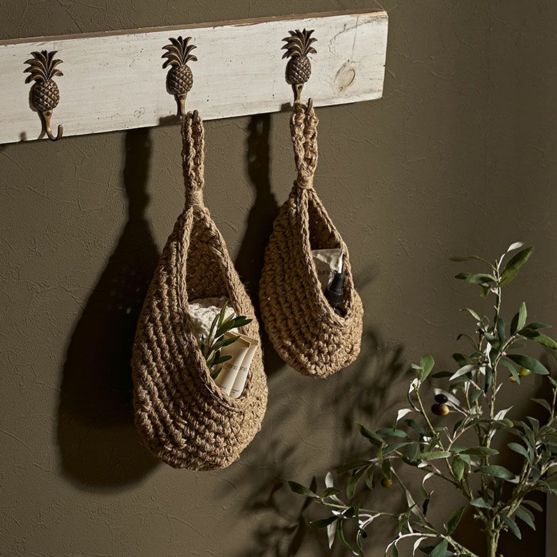 吊下げ ぶら下げ 引っ掛け キッチン ランドリー 玄関 見せる収納 涙型 持ち手付き 突っ張り棒 ハンドル 造花 ドライフラワー 壁掛け収納 ナチュラル シンプル ギフト プレゼント バスケット 吊り下げ かご カゴ ジュート 麻 マチ広 しずく型 Sサイズ 約 W 15cm D 9cm H 29cm かごバスケット ハンギングバスケット 吊るす 収納 壁掛け ハンギング プランター 観葉植物 クローゼット 小物入れ おしゃれ 北欧 雑貨 アジアン雑貨 バリ [34586-s]