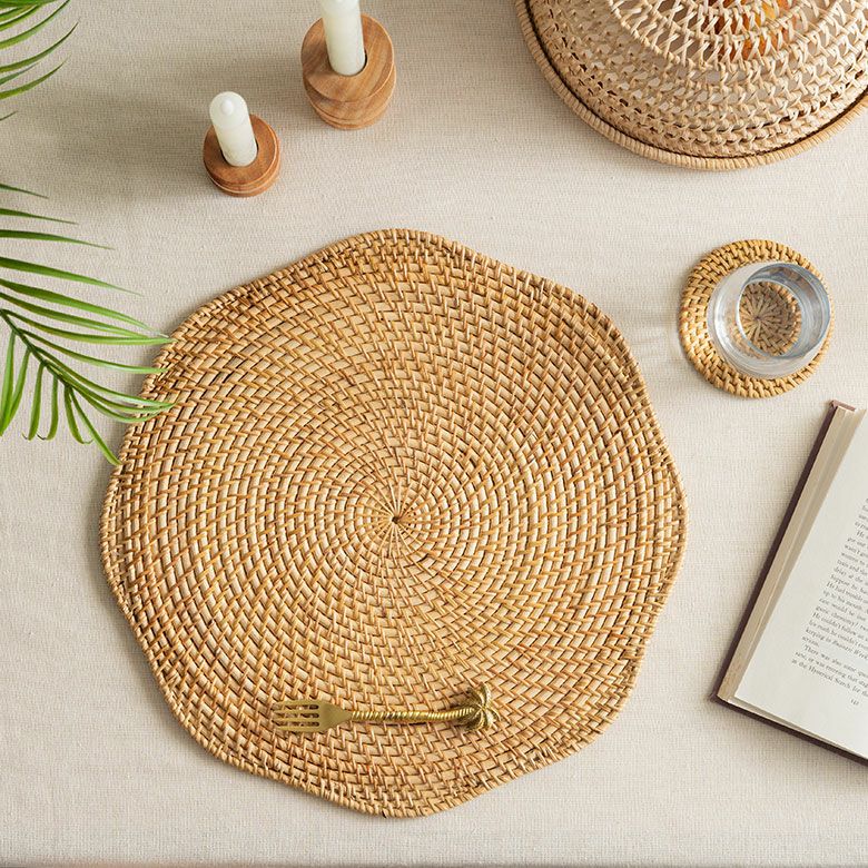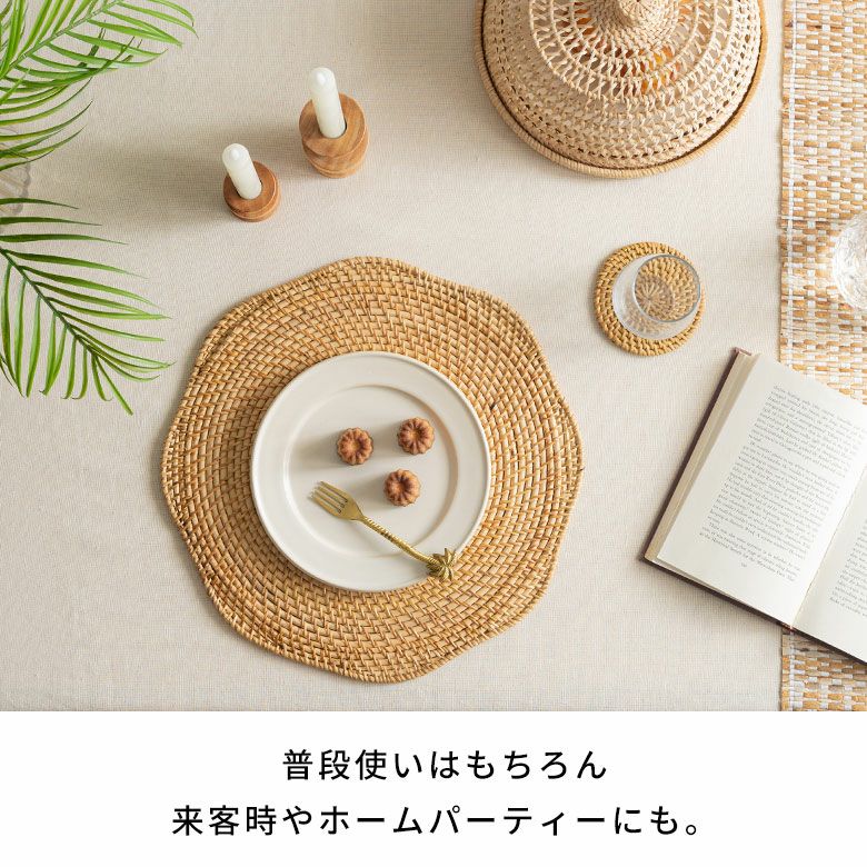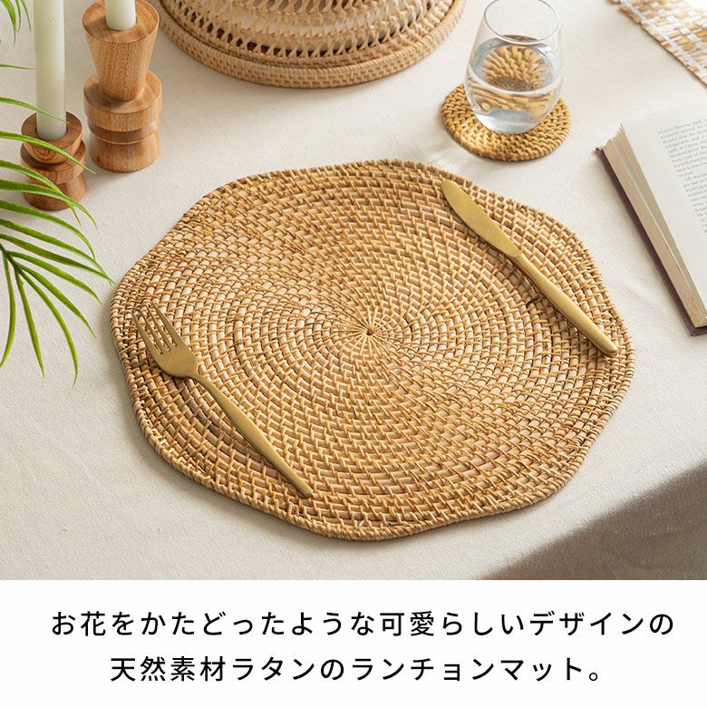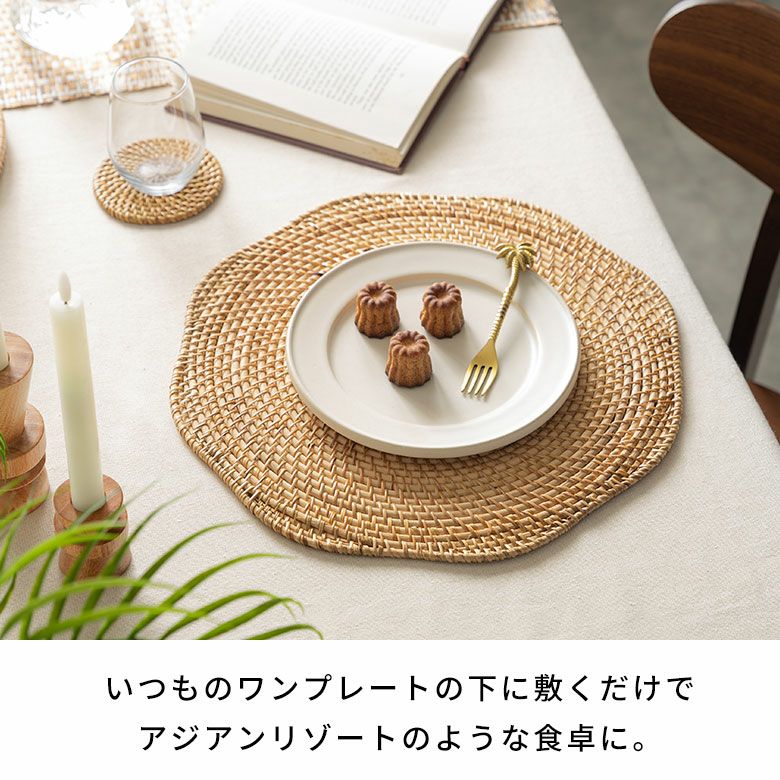 食卓 ランチ ディナー パーティー カフェ レストラン 店舗 コーディネート テーブルウェア キッチン雑貨 敷物 テーブルマット ランチマット プレートマット マット ギフト プレゼント ランチョンマット ラタン 籐 プレイスマット 約 D 38cm W 38cm H 0.7cm プレースマット ディスプレイマット テーブルコーディネート ダイニング キッチン リビング テーブル ディスプレイ アート ナチュラル おしゃれ 北欧 リゾート 雑貨 インテリア アジアン [14091]