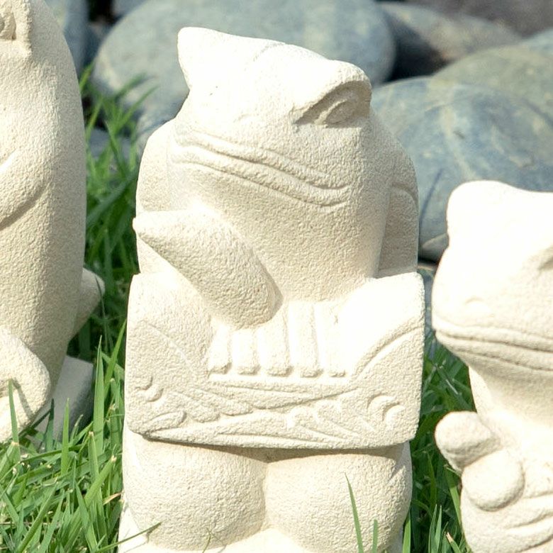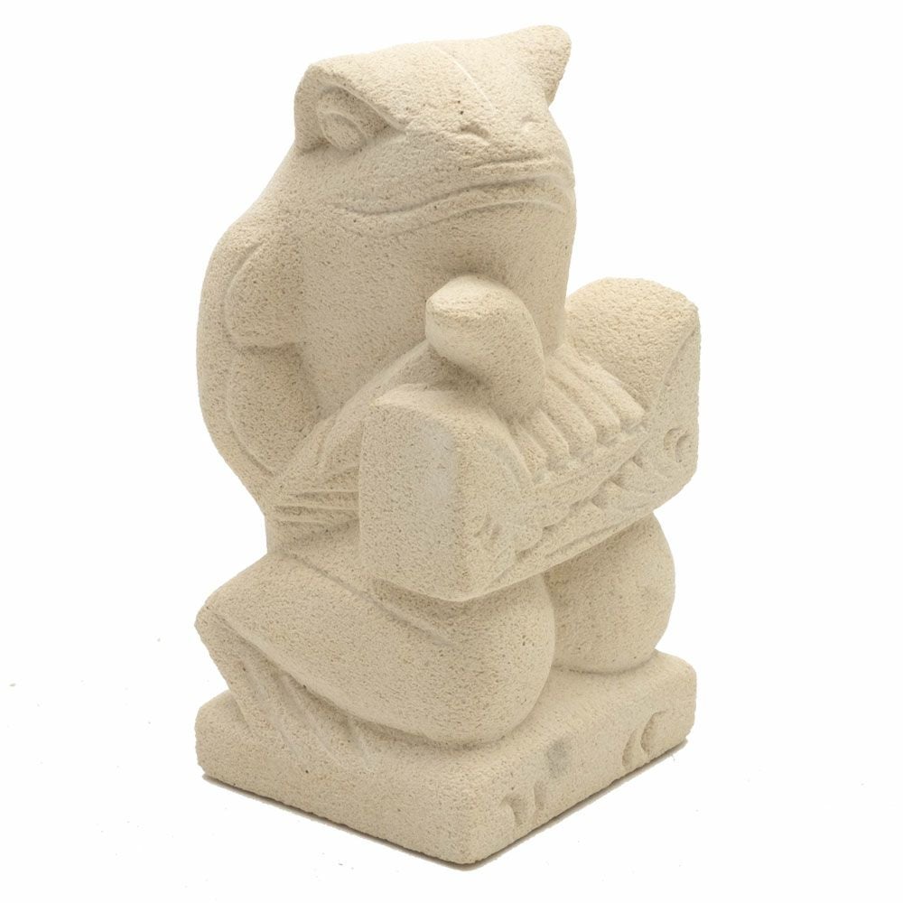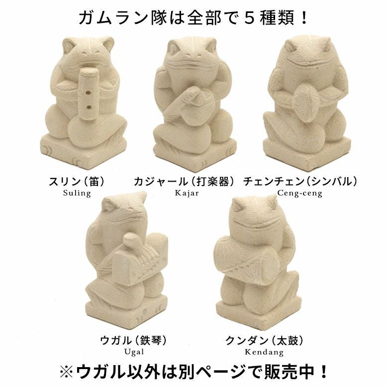 バリ島で見つけたカエルの石像。無事帰る(かえる)の願いを込めて玄関に置くと運気アップ!?バリ島の人気アジアン雑貨 ウガルを持ったカエルのガムラン隊 アジアン 石像 1体[9743]【バリ島の白い石像 かえるの石像 蛙の彫刻 ストーンオブジェ インテリア置き物 アジアンオブジェ バリ島の置物 インテリアデコレーション 飾り 装飾 バリ 雑貨 アジア雑貨 アジアン雑貨】