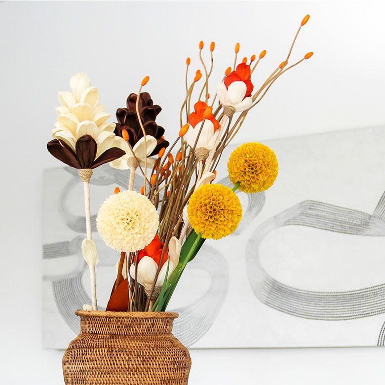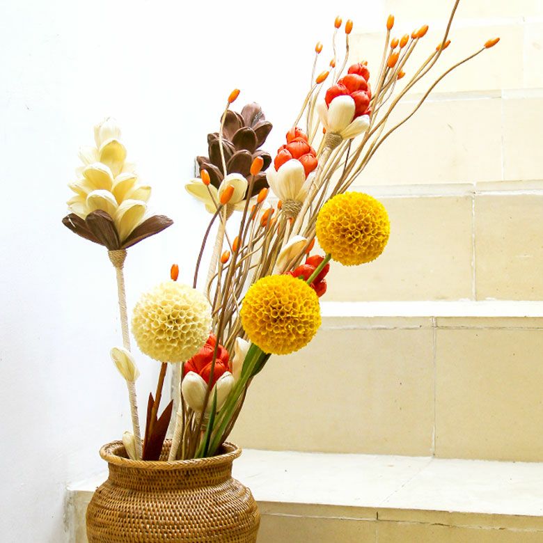 バリ島の人気アジアン雑貨アートプランツ ヤシの葉でできたボールフラワーオブジェ[イエロー色][11591]【造花 インテリアデコレーション バリ 雑貨 アジア雑貨 アジアン雑貨 バリ島のアジアンオブジェ 置き物 花飾り ハワイアン雑貨 バリ雑貨 アートフラワー 置物 ハワイ リゾート インテリア雑貨】