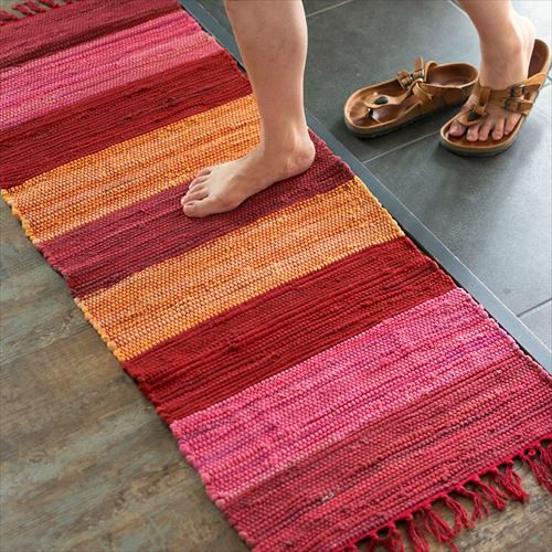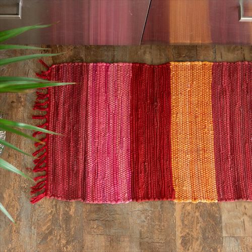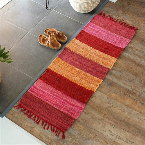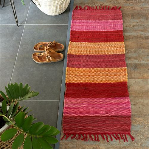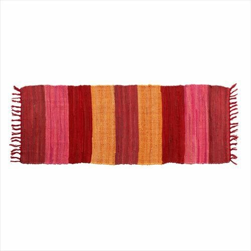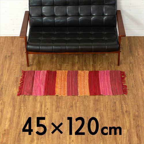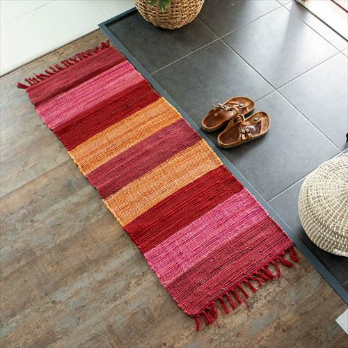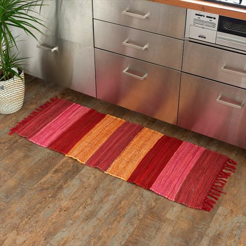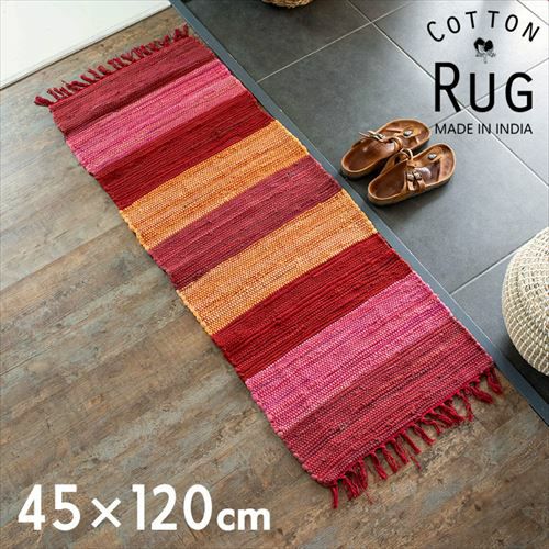 キリムラグ ラグマット インド綿 赤 エスニックラグ ネイティブ キッチンマット コットン ラグマット ワイドボーダー柄 フリンジ付き 綿100% 45×120cm ピンク [34402-pk]【 コットンキリム マット キリムラグ カーペット 玄関マット 台所 敷物 キリム風ラグ ストライプ柄 おしゃれ 夏用 オールシーズン アジアン 雑貨 アジアン雑貨 】