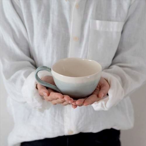 コップ シンプル おしゃれ かわいい プレゼント ティーカップ 陶器 ブルー ピンク グラデーション [90001-bl,90001-pk]【 広口 カップ 食器 コーヒーカップ カフェ バイカラー ナチュラル 】