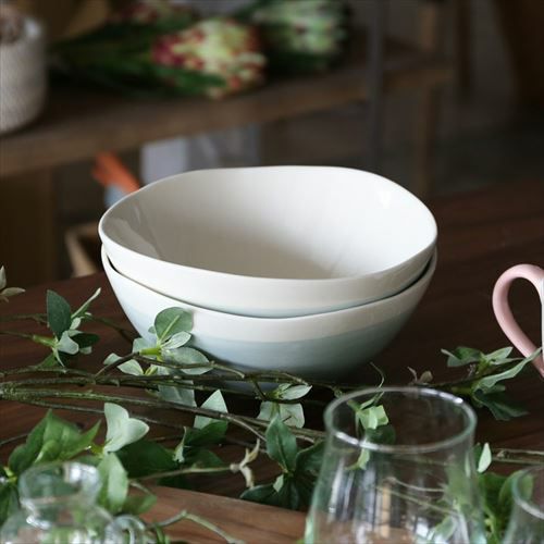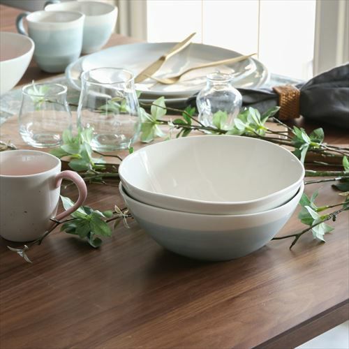 鉢 シンプル おしゃれ かわいい プレゼント ボウル 陶器 19cm ブルー ピンク [90002-bl,90002-pk]【 サラダボウル スープボウル 食器 皿 器 グラデーション ナチュラル 】