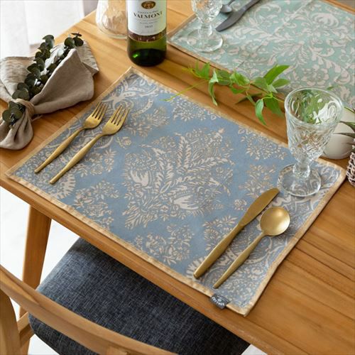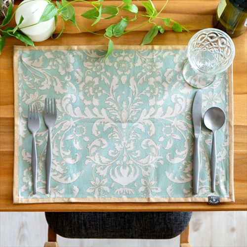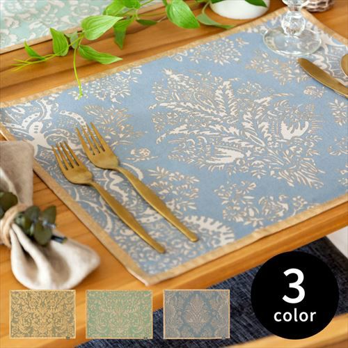 プレイスマット テーブルデコレーション ダマスク柄 【メール便対応】ランチョンマット 綿 32×45cm ブルー グリーン グレー [94217-bl 94217-gn 94217-gy]【 プレイスマット テーブルウェア テーブルコーディネート テーブルマット ダマスク アンティーク調 ゴールド おしゃれ アジアン雑貨 アジアン 雑貨 リゾート 】