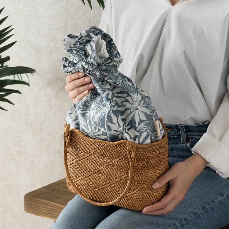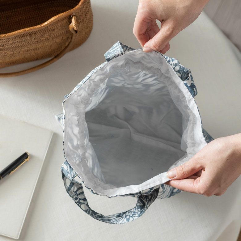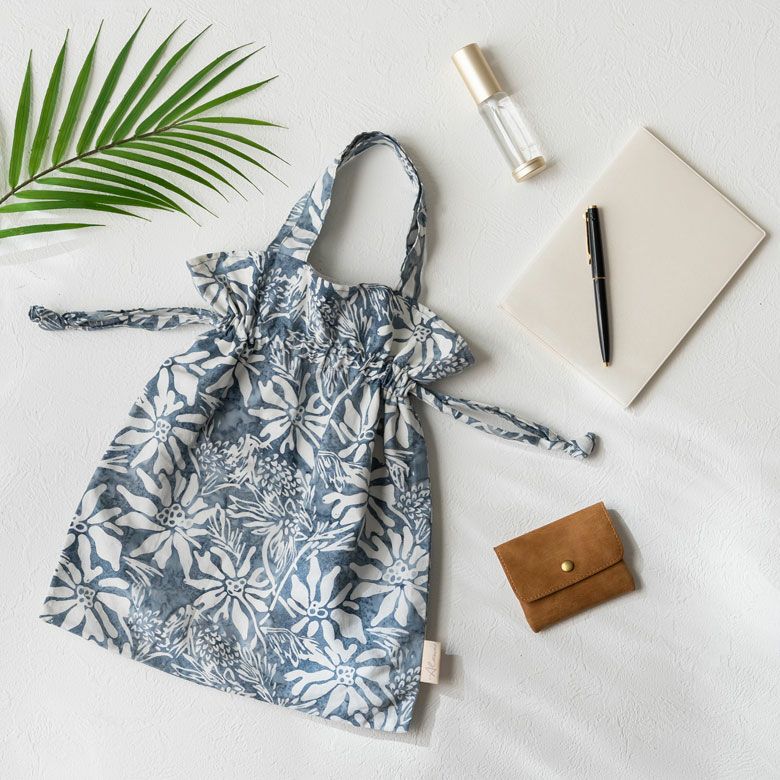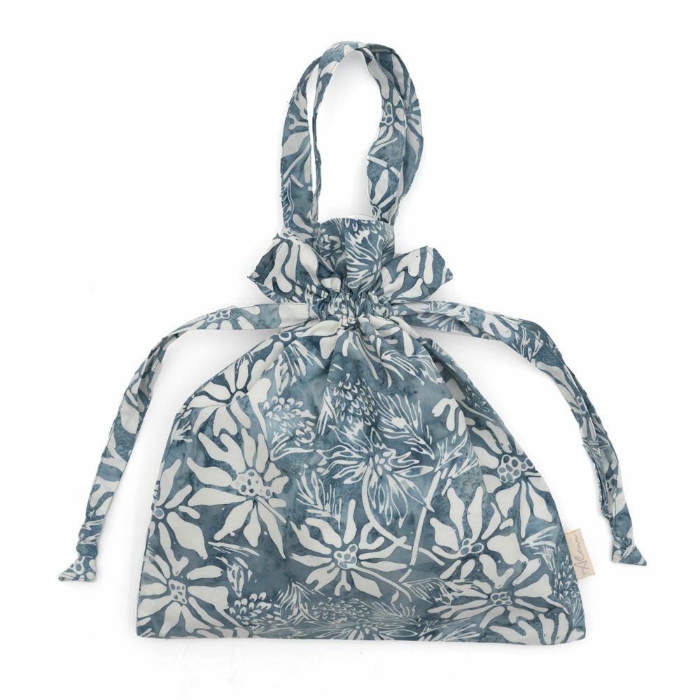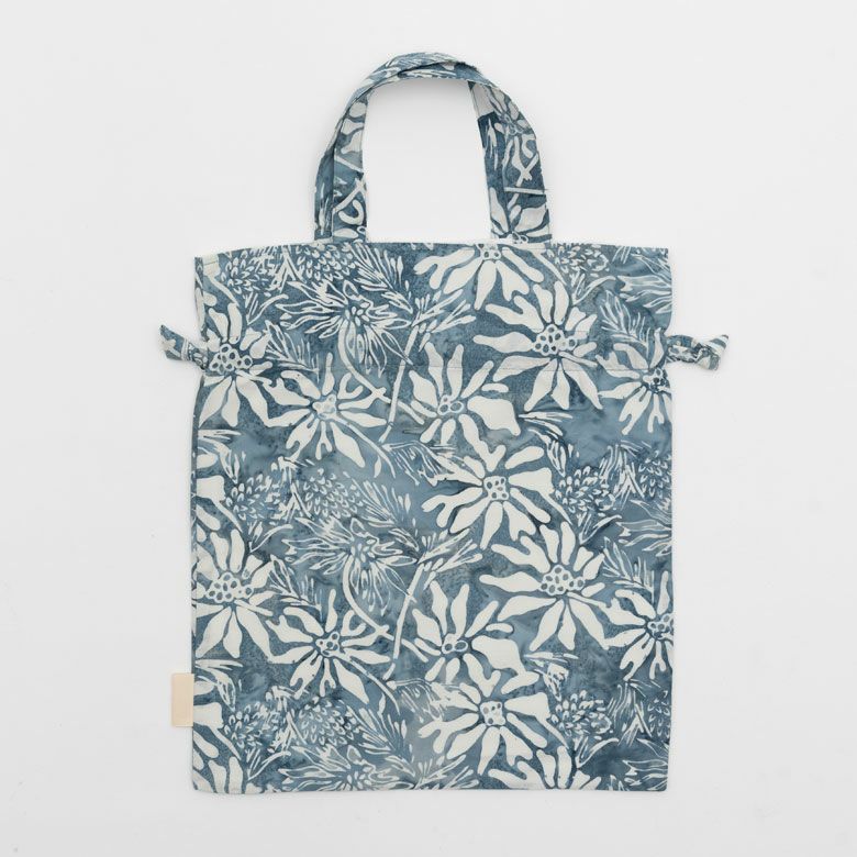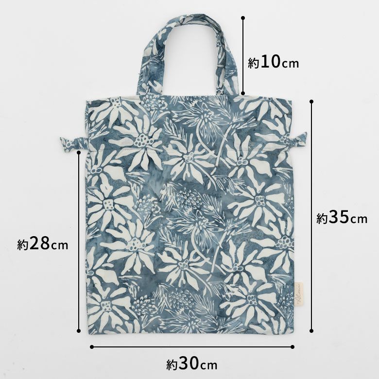 巾着バッグ トートバッグ 持ち手付き巾着袋 巾着トート 贈り物 巾着 きんちゃく 小物入れ ポーチ スタンプ バティック 花柄 グレー ロング コットン 綿100% 約 W30 × H35cm Alami アラミ エコバッグ ランチバッグ お弁当入れ 手提げ袋 インナーバッグ おしゃれ 北欧 アジアン 雑貨 バリ島 メール便対応 14006