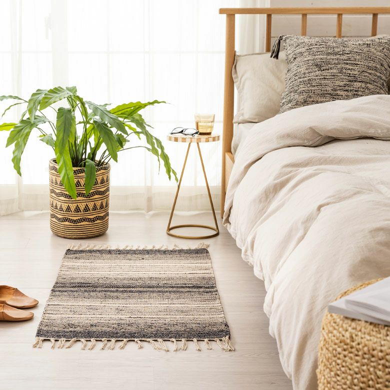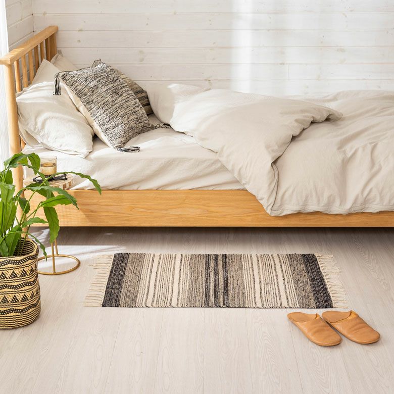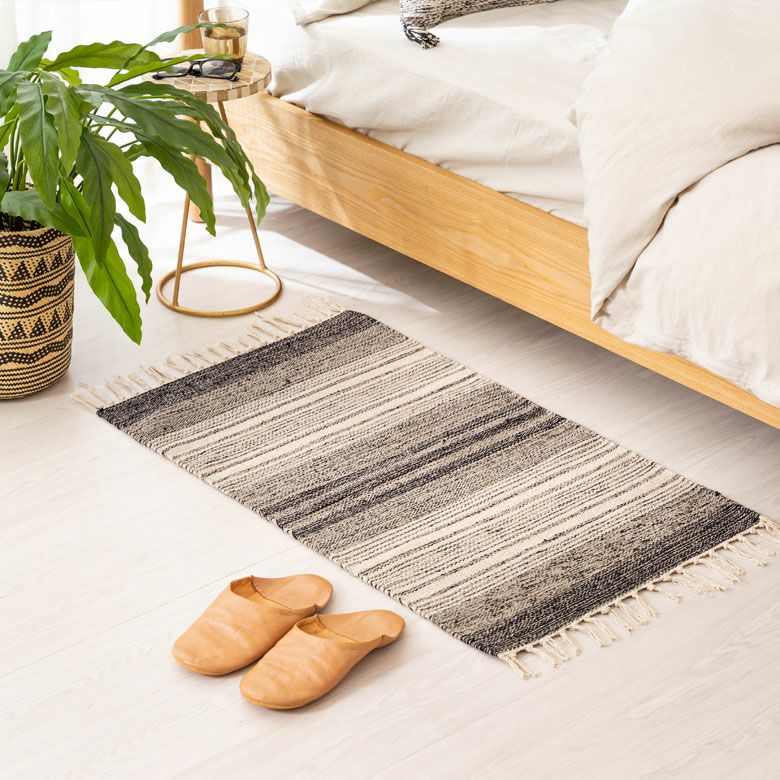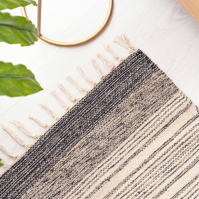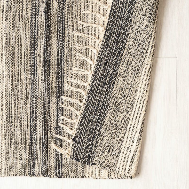 コーナーラグ 手織り 屋内用 オールシーズン 春 夏 秋 冬 風水 玄関マット フリンジ モノトーン ボーダー ストライプ インド製 コットン100% 約 50×80cm ラグ ラグマット 夏用 コットンラグ 室内 キリム風ラグ アクセントラグ アウトドア キャンプ リビング 寝室 おしゃれ 北欧 綿100% アジアン 雑貨 BOHO モロッカン モロッコ [34522]