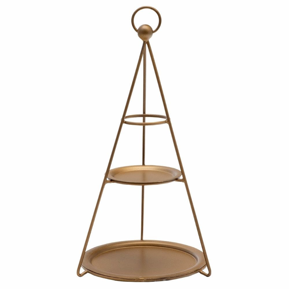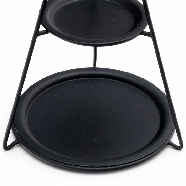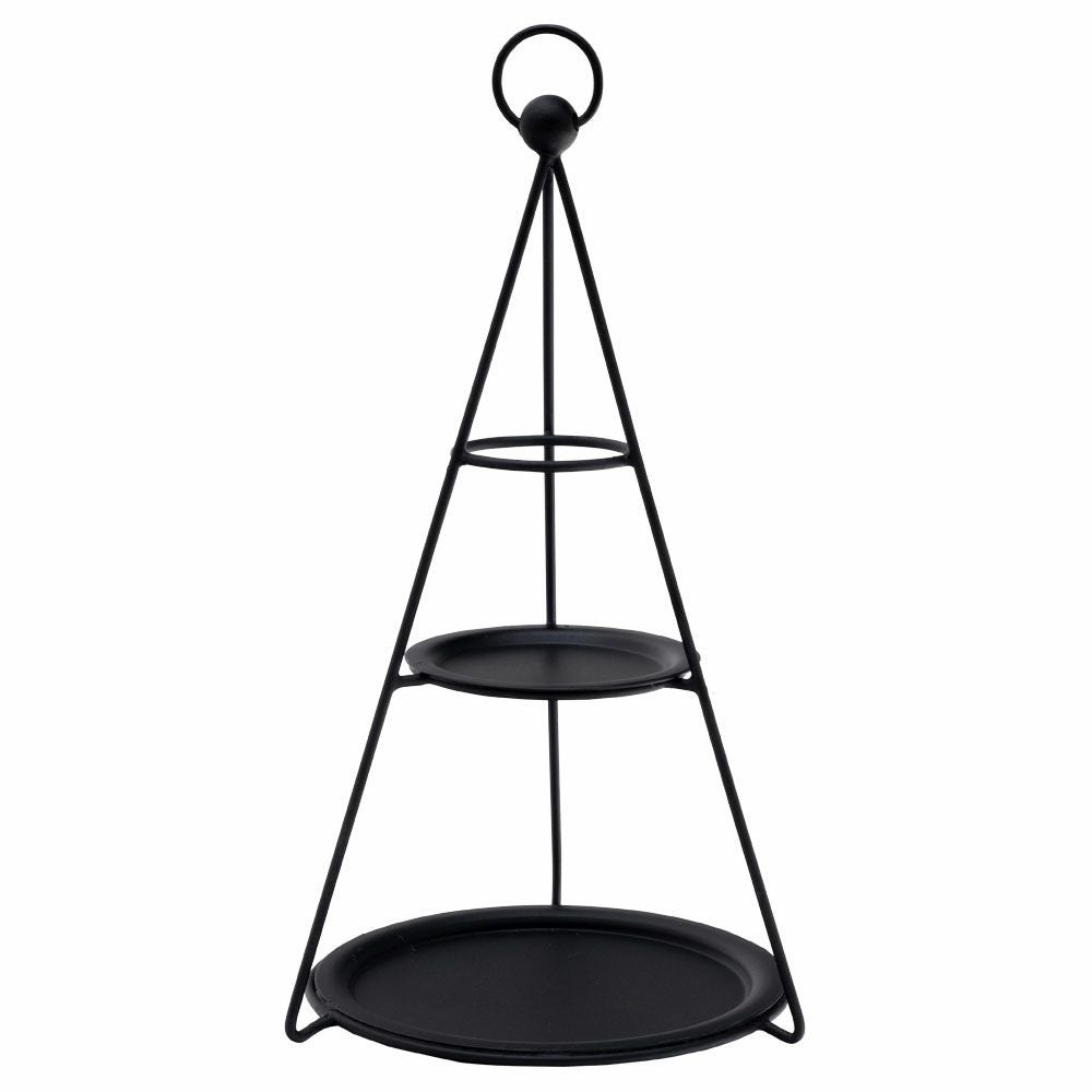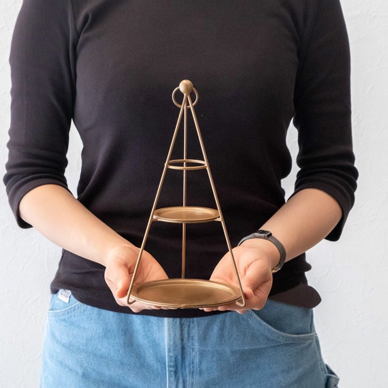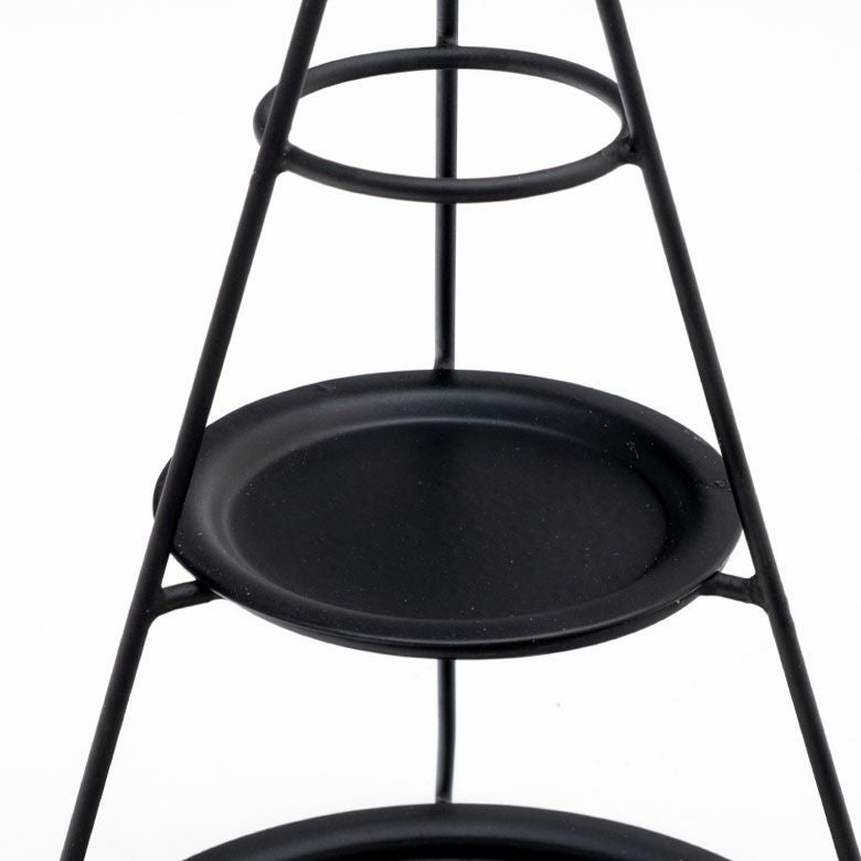 オブジェ ディスプレイラック ジュエリースタンド 玄関 リビング デコレーショントレイ スチール 高さ24.5cm 直径15cm ブラック ゴールド 3段 [90076]【 デコレーション トレイ付き 円錐形 ツリー型 おしゃれ クリスマス 黒 金 アイアン 円形トレイ 持ち手リング付き ディスプレイ クリスマス アクセサリースタンド Sサイズ】
