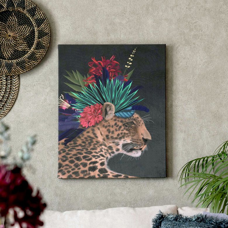 植物 レオパード アニマル ウォールアート ウォール インテリア アートフレーム アートパネル ボタニカル ジャングル 楽園 豹 W 40cm D 50cm H 2.7cm アート キャンバス セット [67006]【 アートポスター 絵画 ピクチャー 壁掛け ウォールデコレーション プリント 北欧 おしゃれ リゾート エスニック アジアン雑貨 バリ島 アジア 】