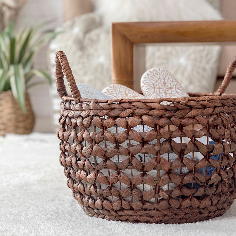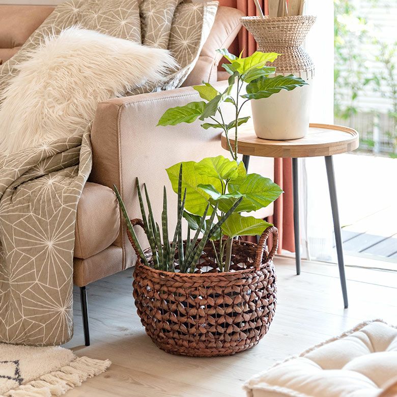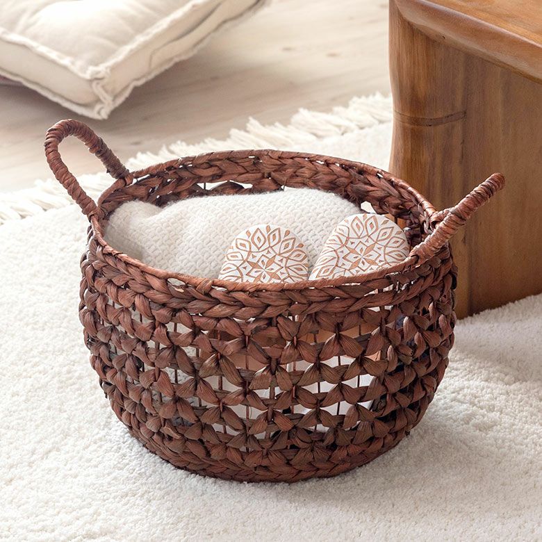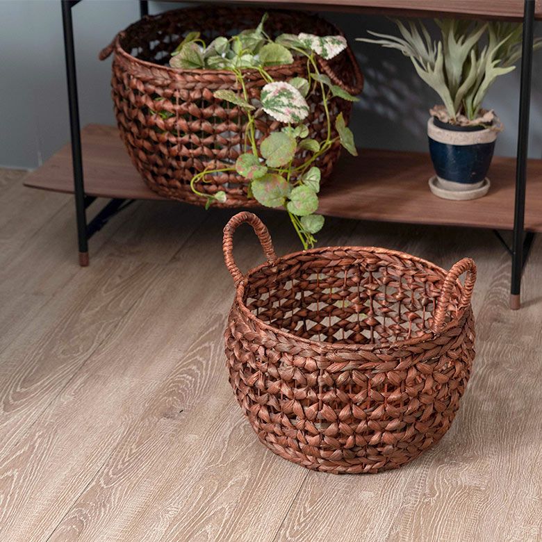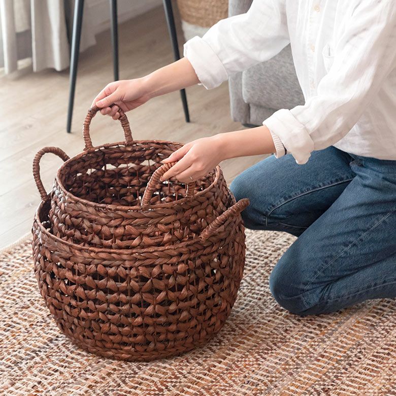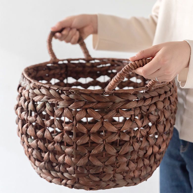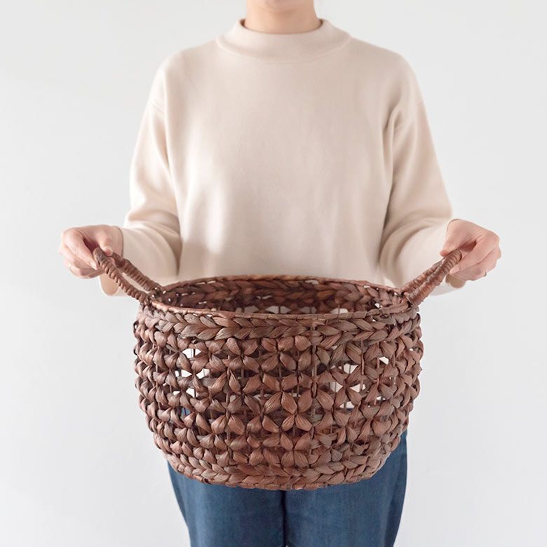 プランターカバー おもちゃ箱 野菜 果物 ストッカー キッチン かご バスケット ウォーターヒヤシンス Mサイズ 約 W 38cm D 38cm H 23cm [51280]【 カゴ 収納かご 収納バスケット 収納ボックス 荷物 おもちゃ 雑貨 衣類 収納 入れ ケース ハンドル 持ち手 付き おしゃれ 北欧 リゾート ナチュラル アジアン 雑貨 バリ島 】