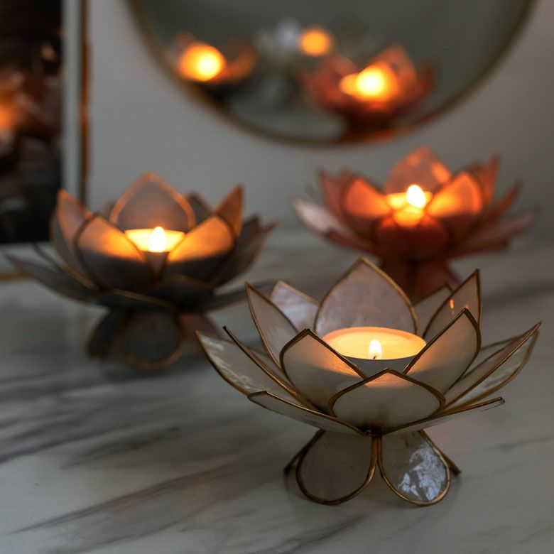 花びら 蓮の花 デコレーション ディスプレイ 燭台 オブジェ キャンドルホルダー カピスシェル キャンドル ホルダー 立て スタンド ホワイト グレー ピンク W 12.5cm D 12.5cm H 8cm [8064]【 貝殻 貝 シェル ろうそく立て キャンドルスタンド ティーライト モダン ライト 照明 おしゃれ リゾート インテリア アジアン 雑貨 バリ 】