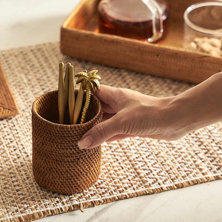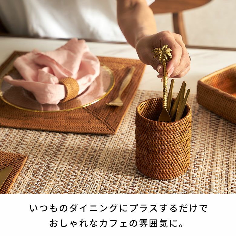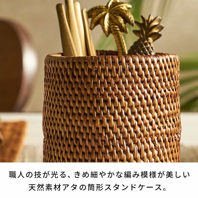 お箸立てにもペン立てにも使えるバリ島の人気アジアン雑貨 アタで編まれたお箸立て S カトラリースタンド ペンスタンド 箸立て 収納 スタンド バリ雑貨 アジアン雑貨 おしゃれ インテリア アタ カトラリーケース アジア工房 キッチン カトラリー リゾート シンプル ナチュラル 小物入れ エスニック バリ島 アタ製品 [2401]