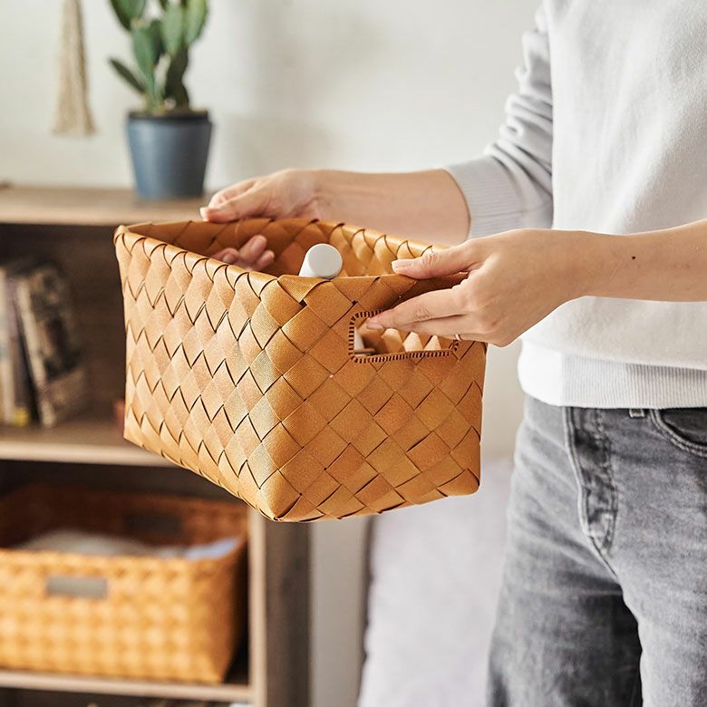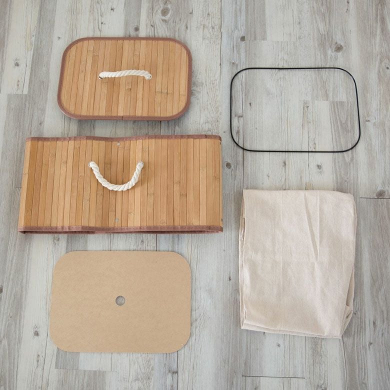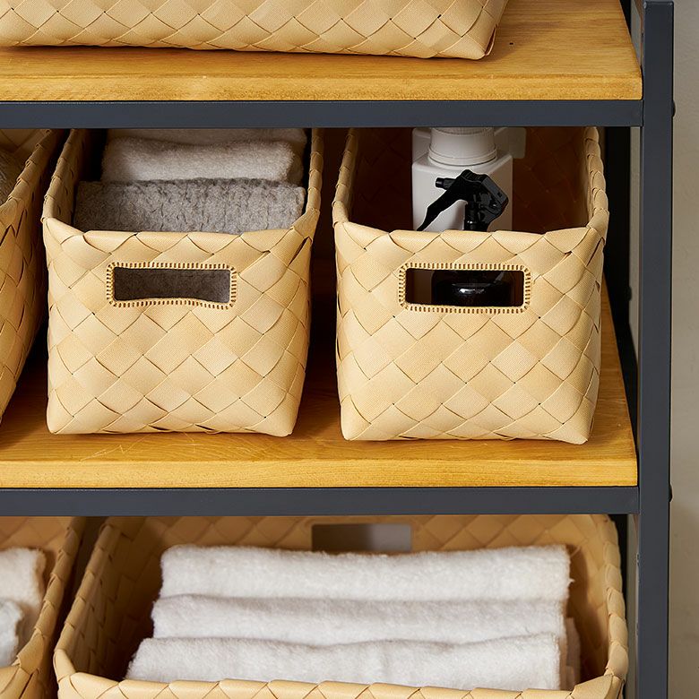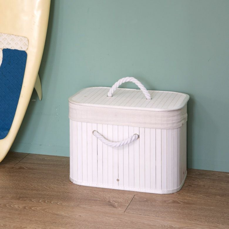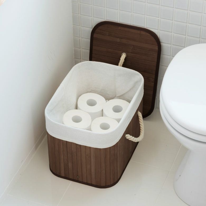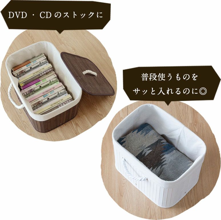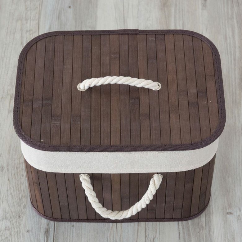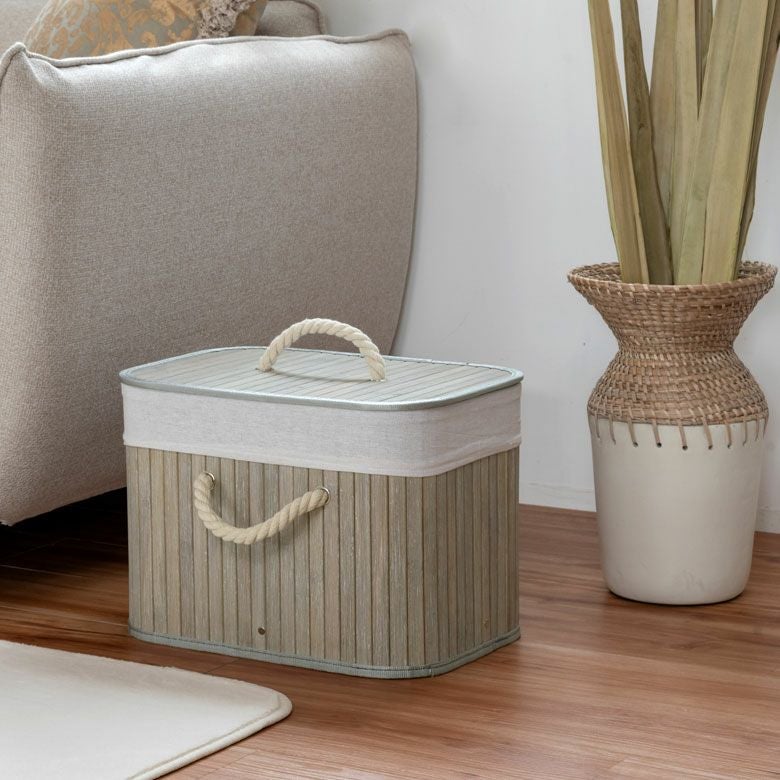 ロープハンドルのバンブーバスケット。カラーボックス対応。 ロープハンドルがおしゃれな スクエア型 バンブーバスケット ショートタイプ(66440-66441-66442)【収納ボックス ランドリーバスケット おしゃれ 収納かご カラーボックス バスケット 内布付き かわいい 片付け 目隠し ふた付き 蓋付き 竹 バンブー】