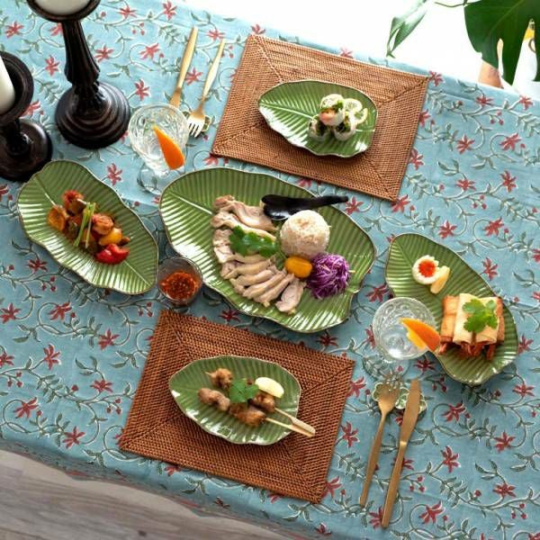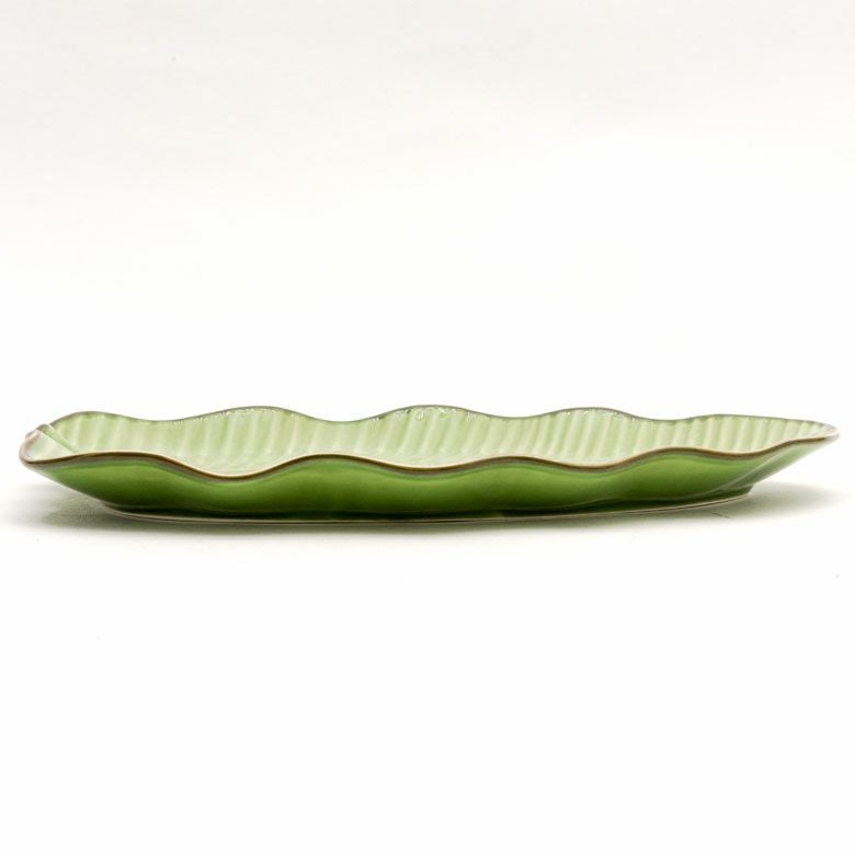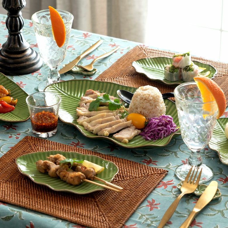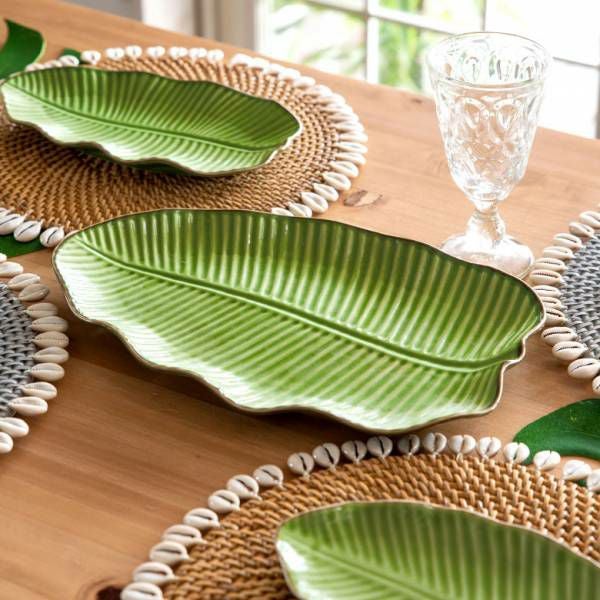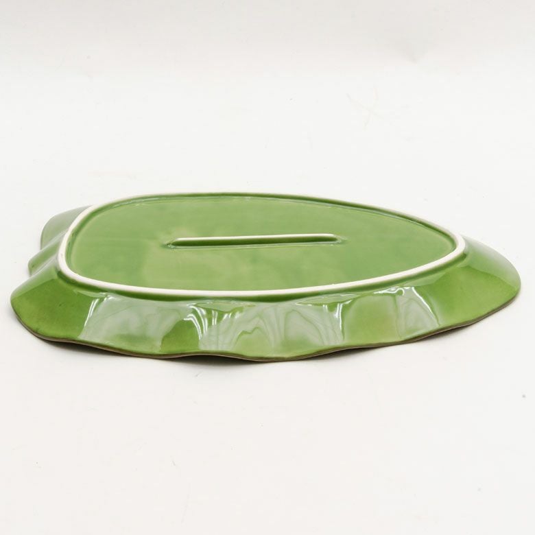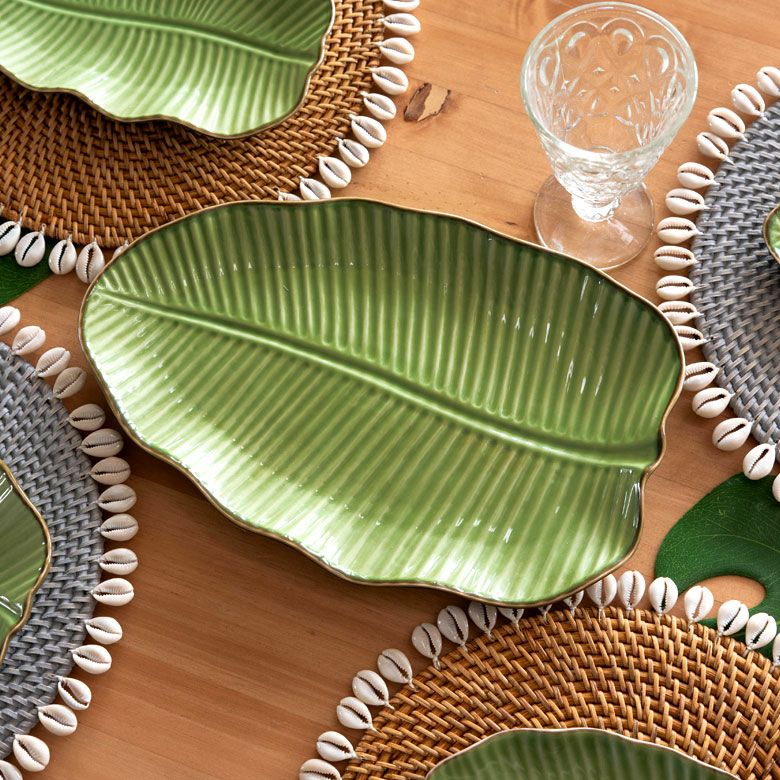 大皿 メインディッシュ テーブルウエア テーブルコーディネート バナナの葉っぱ バナナリーフプレート 南国 葉っぱ皿 カフェごはん 電子レンジ対応 プレート バナナリーフ柄 Lサイズ 全長33.9cm グリーン 陶器製 食器 プレート リーフプレート リーフ皿 大皿 可愛い バリ島 リゾート ギフト プレゼント カフェ レストラン おしゃれ キッチン雑貨 アジアン 雑貨 アジアン雑貨 [66810]