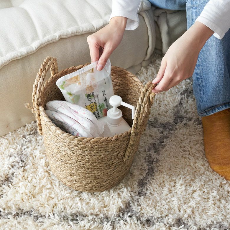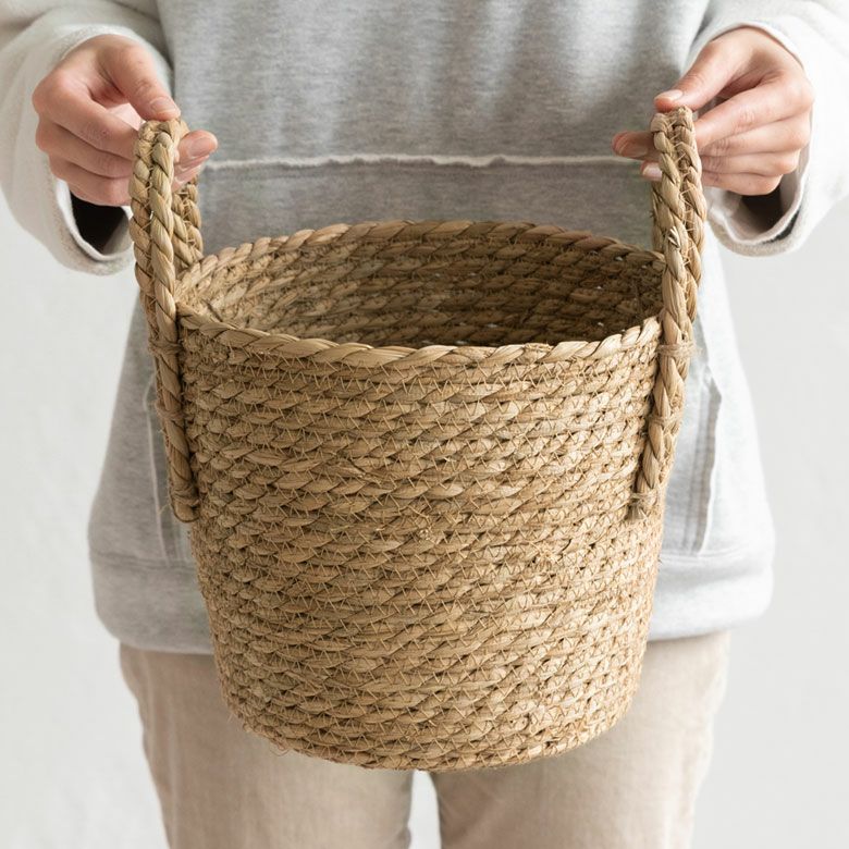 かごバスケット 収納かご 収納バスケット おもちゃ収納 プランターカバー 植木鉢カバー バスケット 持ち手付き ラッシュ製(い草) Mサイズ 約 W 25 × D 25 × H 21 cm [67085]【 鉢カバー 7号 8号 プランター入れ カバー ポット プランツバスケット かご 籠 観葉植物 北欧 おしゃれ アジアン 雑貨 アジアン雑貨 】