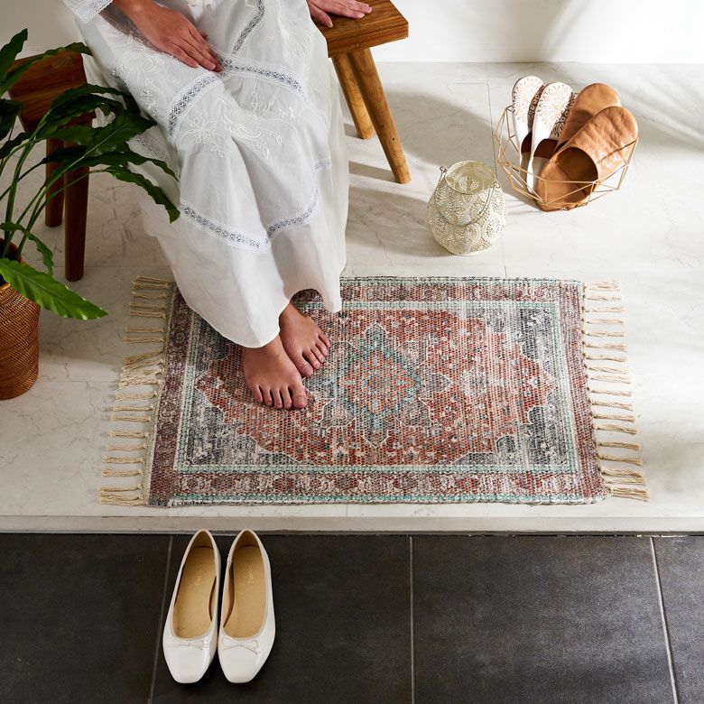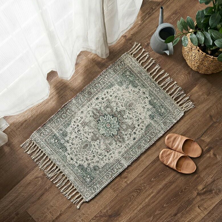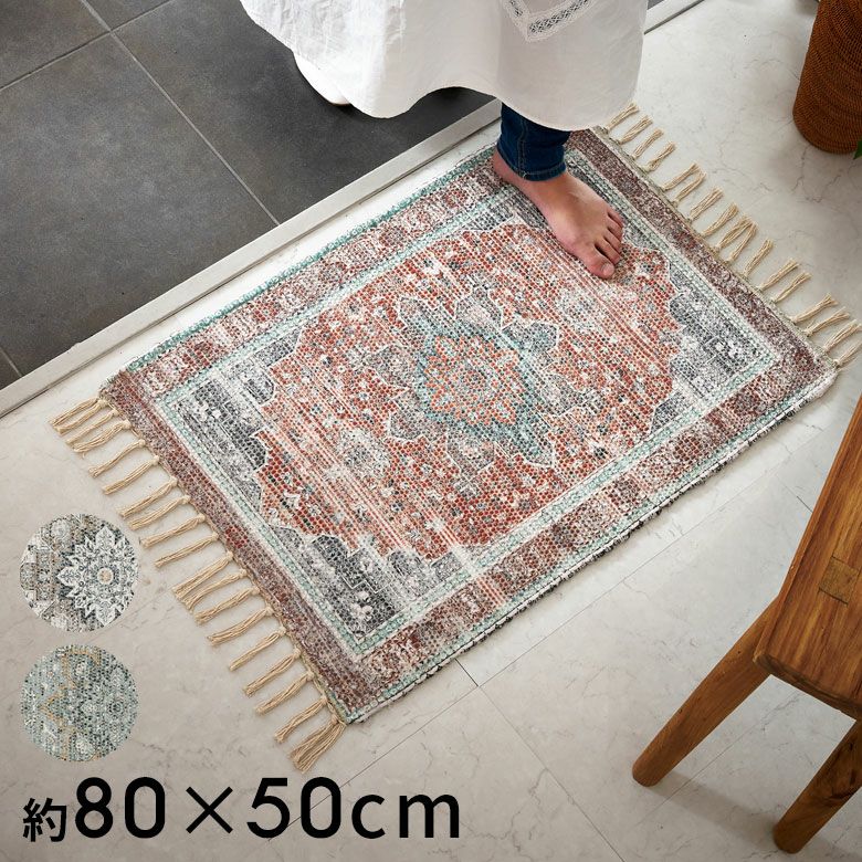 アクセントラグ リビング ダイニング 寝室 ベッド カーペット 絨毯 アンティーク調 ペルシャ絨毯調 ビンテージ風 ビンテージ調 オールシーズン 春 夏 秋 冬 ギフト プレゼント ラグマット ラグ 玄関マット メダリオン柄 長方形 約 W 50cm D 80cm H 1cm レッド グリーン ベージュ インド ペルシャ絨毯風 オリエンタル アンティーク風 玄関 キッチン ソファ マット おしゃれ リゾート モロッカン エスニック アジアン 雑貨 アジアン雑貨 [34594]