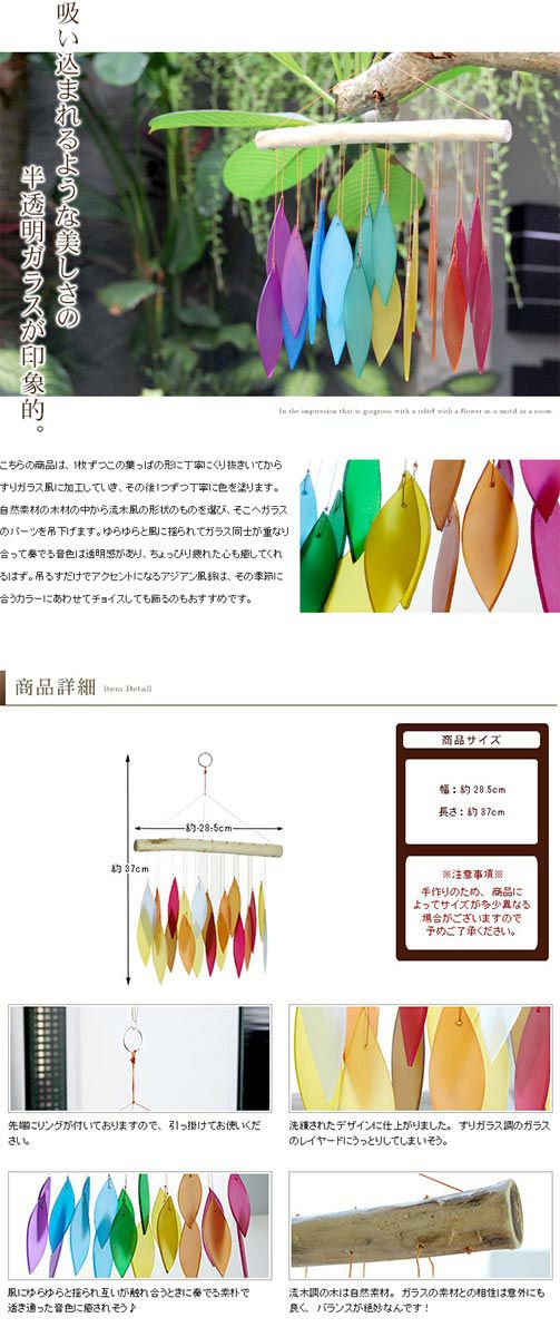 心癒される音色を奏ででくれるアジアン風鈴 ウインドチャーム 葉っぱ バリ島の人気アジアン雑貨 すりガラス風に仕上げた、透き通るような音色のアジアン ウインドチャイム リーフ 5色展開 風鈴 ウィンドチャーム アジア雑貨 アジアン雑貨 バリ島 ウィンドチャイム ふうりん エスニック リゾート バリ雑貨 インテリア雑貨 [114]