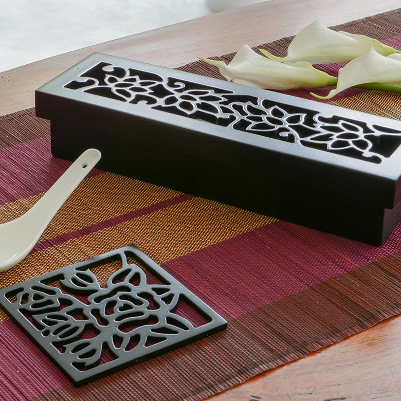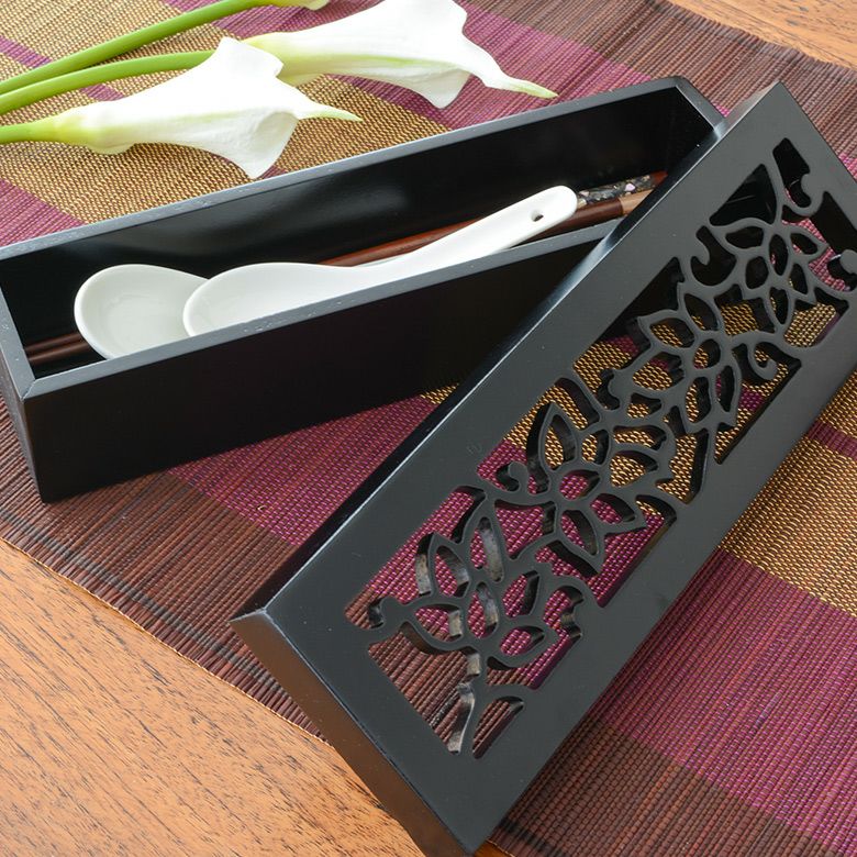 オリエンタルな蓮の彫刻が彫られた四角いアジアン収納ケース。 蓮の彫刻が彫られた四角い収納ケース[11404]【ハス ロータス アジアン収納ボックス おしゃれ 収納BO× カトラリーケース 整理箱 シノワズリ シノワ カフェ お箸入れ オリエンタル 模様 雑貨 アジア雑貨 アジアン雑貨 モダン かわいい】