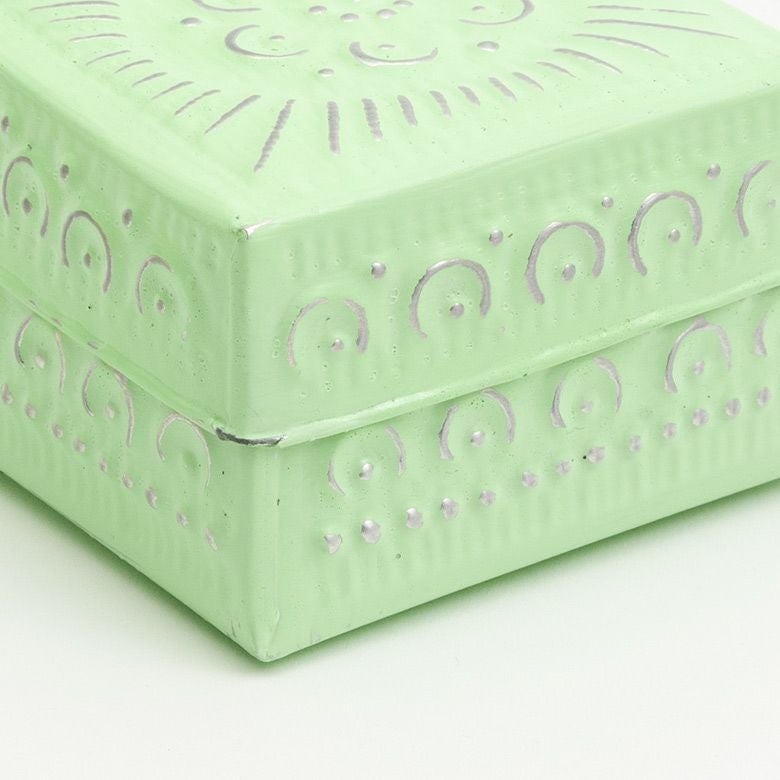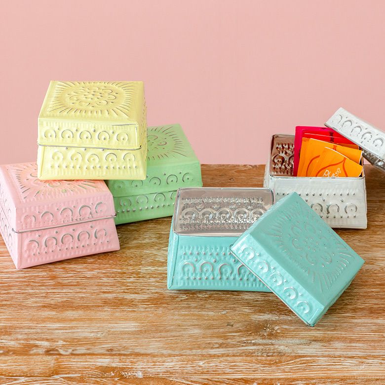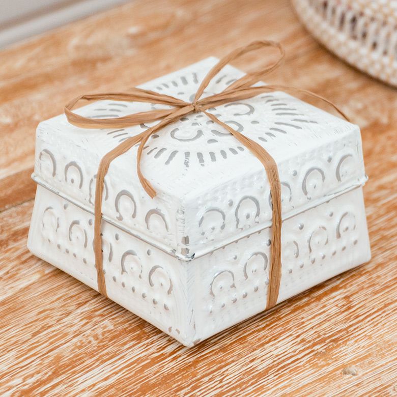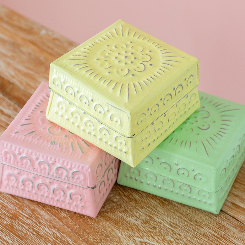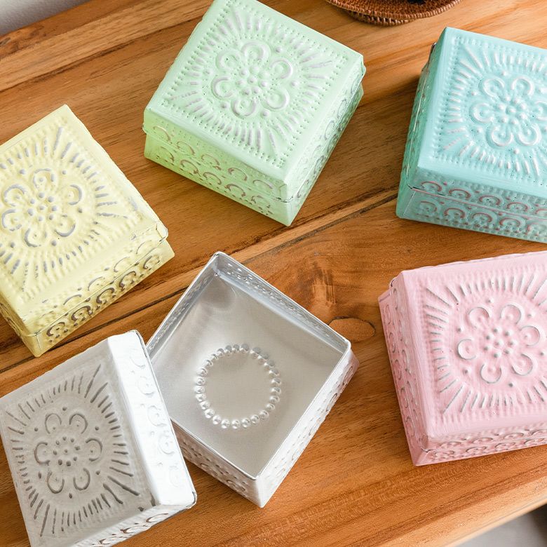 小物入れ 小物収納 アクセサリーケース 小箱 リビング収納 小物入れ 蓋付き 正方形 Mサイズ ソカシ アルミ製 型押しデコレーション柄 幅約11cm 高さ約11cm 5色展開[13862]【 小物ケース 収納ケース 蓋付きケース アクセサリーケース 整理整頓 蓋付き小物入れ 収納ボックス 収納BOX ギフトボックス アジアン雑貨 】
