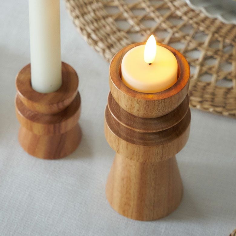 2way 蝋燭 ろうそく ロウソク スタンド 店舗 カフェ レストラン ハンドメイド ホームパーティー ランチ ディナー ハロウィン クリスマス パーティー バースデー ギフト プレゼント キャンドルホルダー 木製 キャンドル ホルダー Mサイズ ウッド 天然木 約 W 6cm D 6cm H 13cm ナチュラル キャンドルスタンド キャンドル立て ろうそく立て テーパーキャンドル ティーキャンドル デコレーション ディスプレイ 什器 おしゃれ 北欧 雑貨 アジアン [14041]