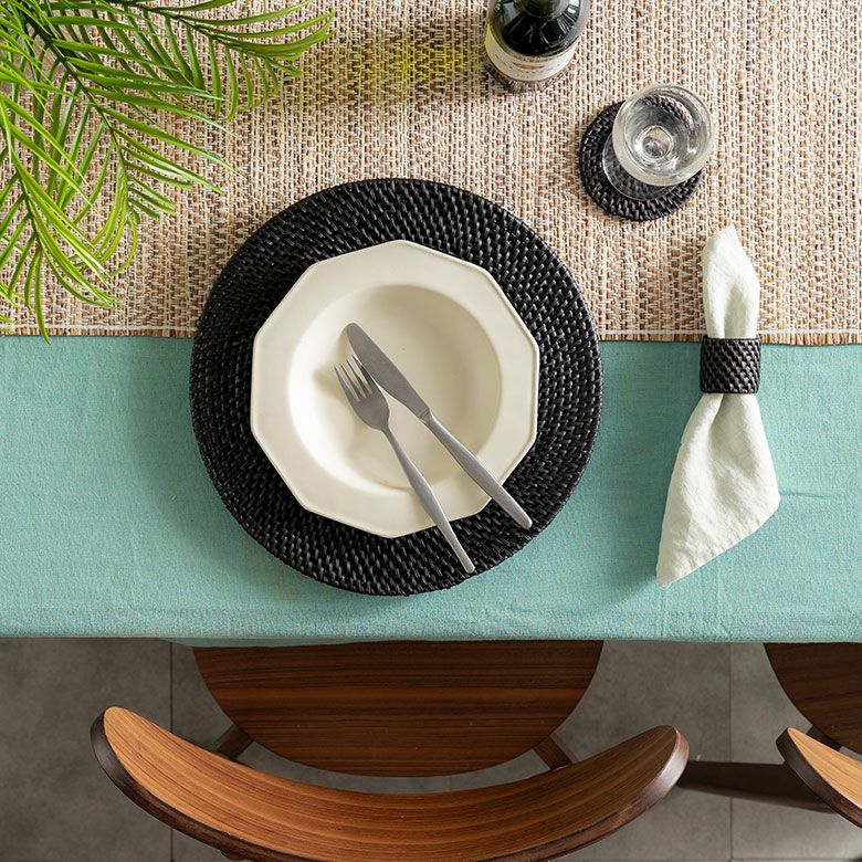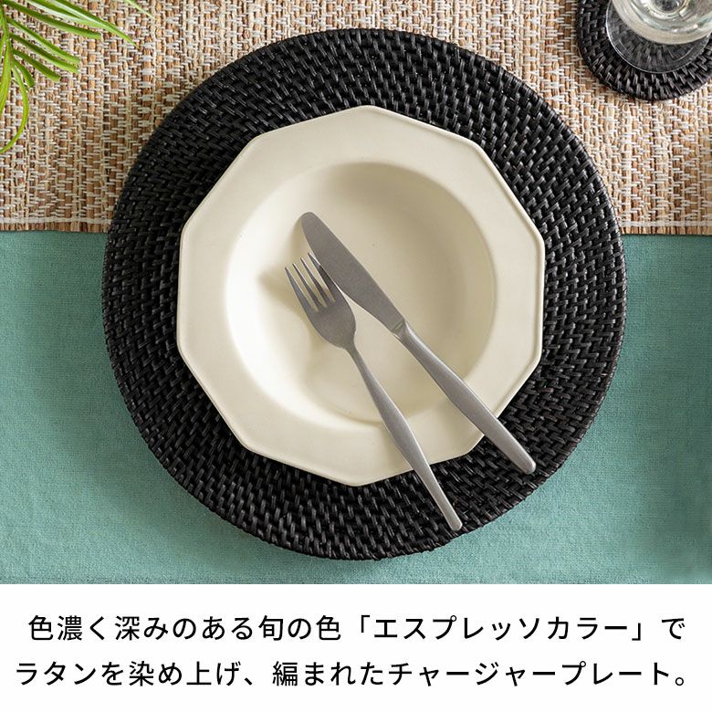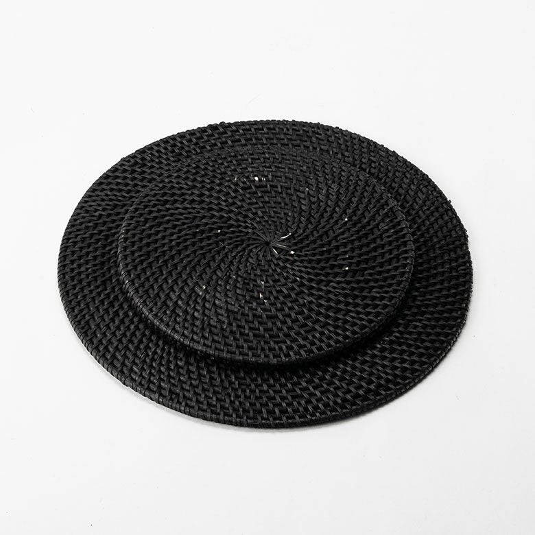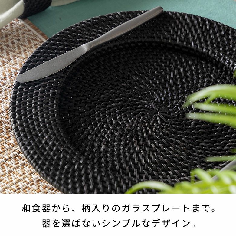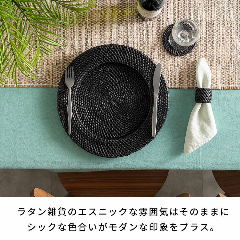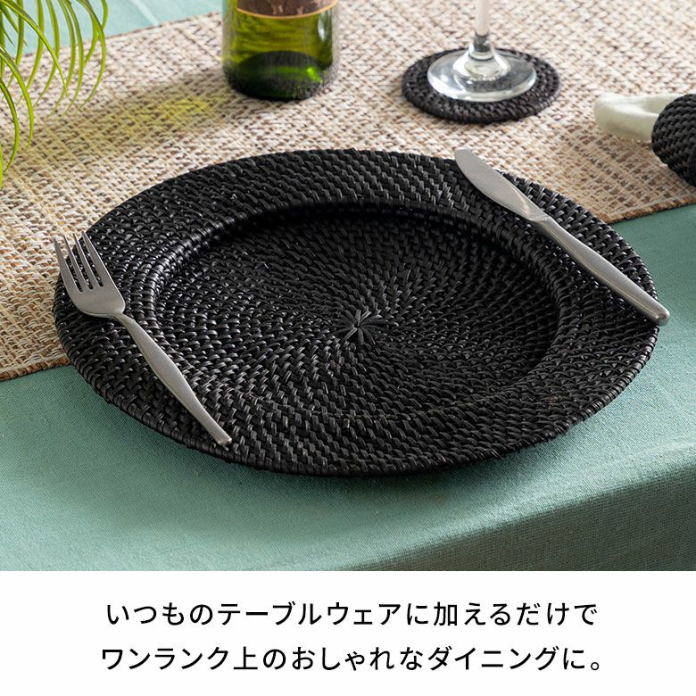テーブル小物 テーブル装飾 パーティー クリスマス ハロウィン レストラン カフェ 店舗用 テーブルコーディネート キッチン テーブルセッティング ランチョンマット 什器 撮影 ギフト プレートトレイ ラタン 籐 ブラック ラウンド 円形 チャージャープレート アンダープレート 約 W 33cm D 33cm H 1cm プレースマット プレイスマット テーブルウエア トレイ トレー プレート キッチン雑貨 おしゃれ 北欧 リゾート 雑貨 インテリア アジアン [14104]