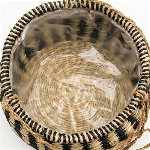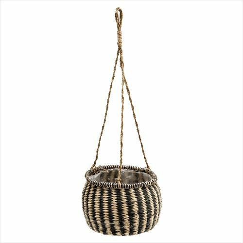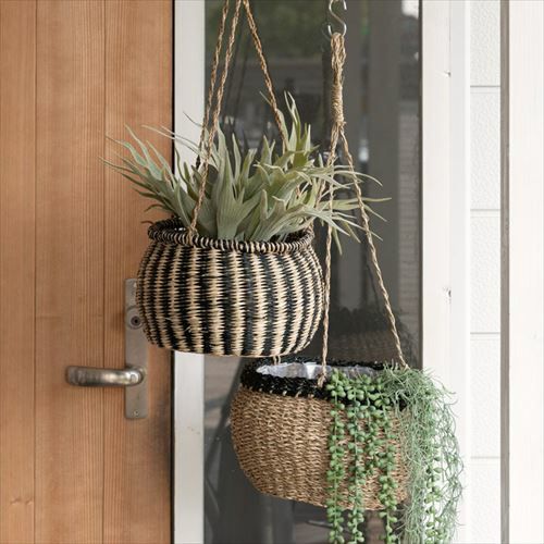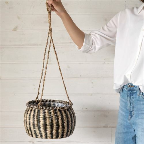 ハンギングバスケット ガーデニング 壁掛け グリーン 紐付き プランターバスケット ハンギング シーグラス製 黒縦ボーダー×ナチュラル 上口径20cm [51164]【 ハンギングプランター プラントホルダー かご 吊るす グリーン 観葉植物 飾る 収納かご 北欧 おしゃれ アジアン 雑貨 アジアン雑貨 】