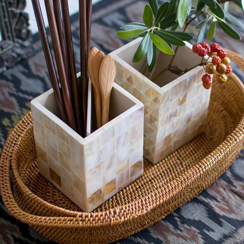 パールシェルを貼り合わせて作ったペン立て。 パールシェルのペン立て パルシェ(vn51122 vn51123 vn51124 vn51125)【ペンスタンド カトラリー収納 おしゃれ カトラリースタンド テーブル収納 ステーショナリー パールシェル エスニック シェル小物 かわいい シェル リゾート アジアン雑貨 アジア雑貨】