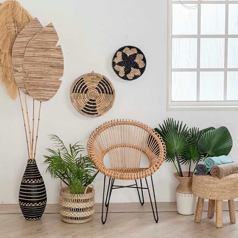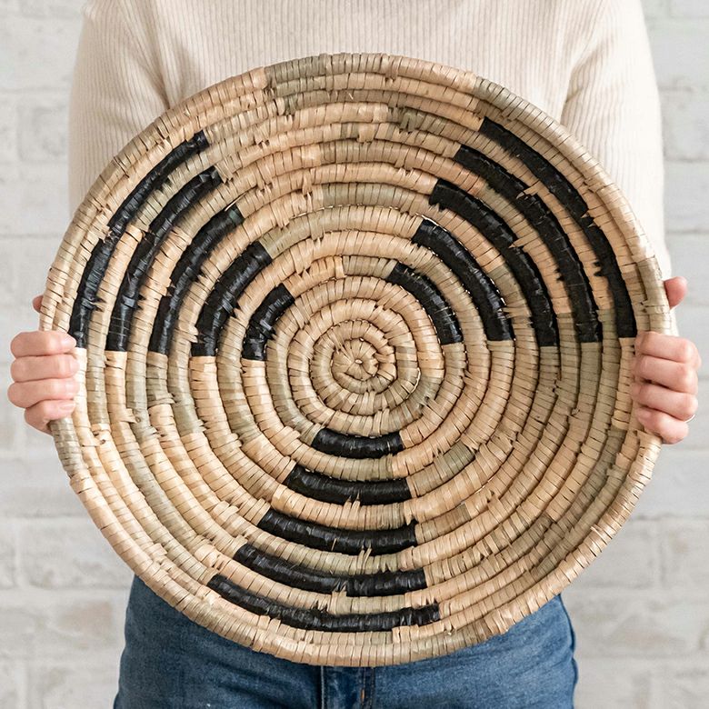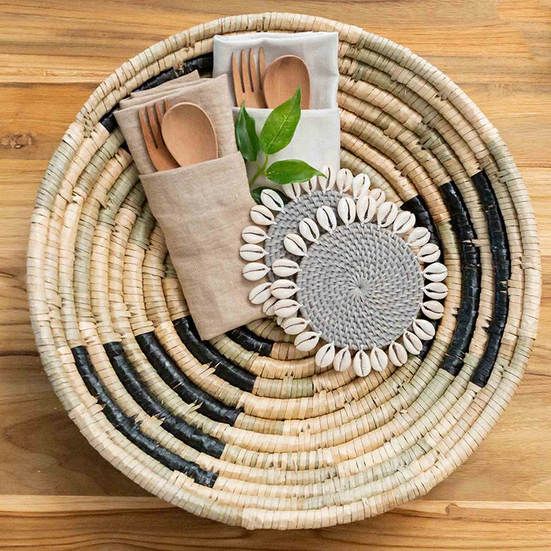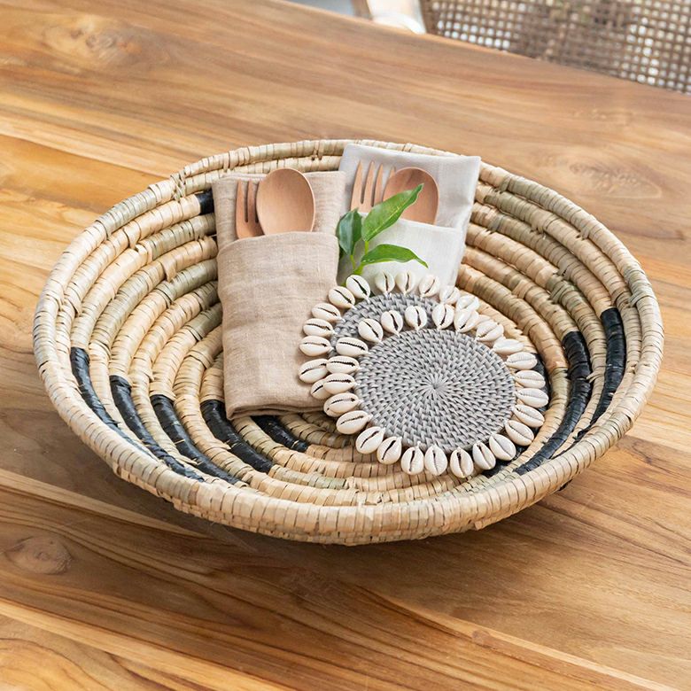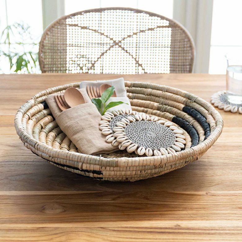 ハンドメイド かご カゴ 卓上 棚上 アート インテリア 壁飾り ウォールデコレーション シーグラス製 壁掛け トレイ トレー W 40cm D 40cm H 9cm [51248]【 収納 バスケット 荷物入れ オブジェ ディスプレイ 見せる収納 おしゃれ リゾート BOHO トライバル モダン アフリカン エスニック アジアン雑貨 】