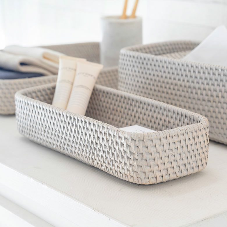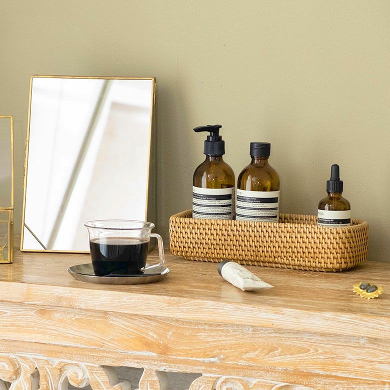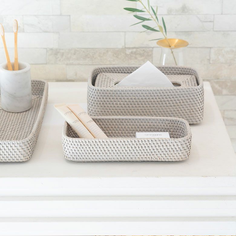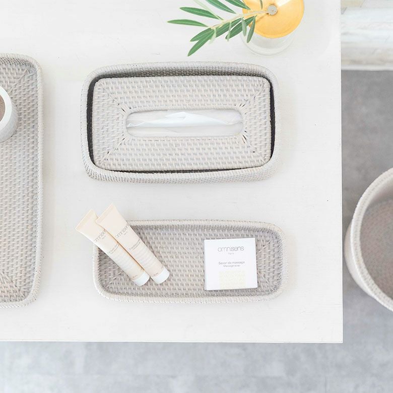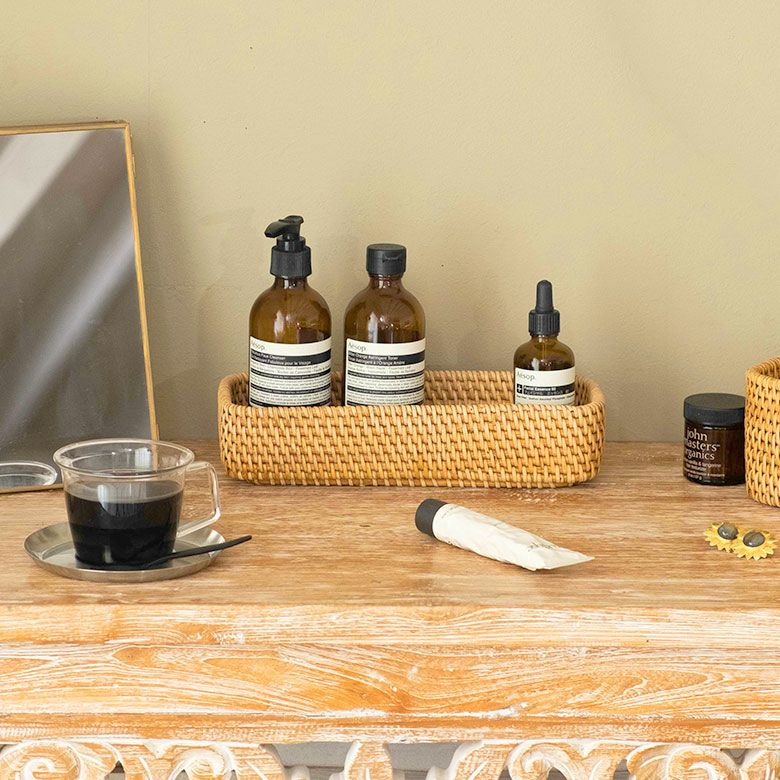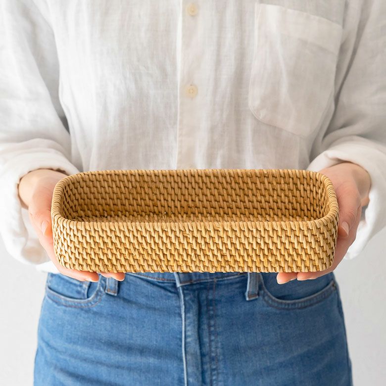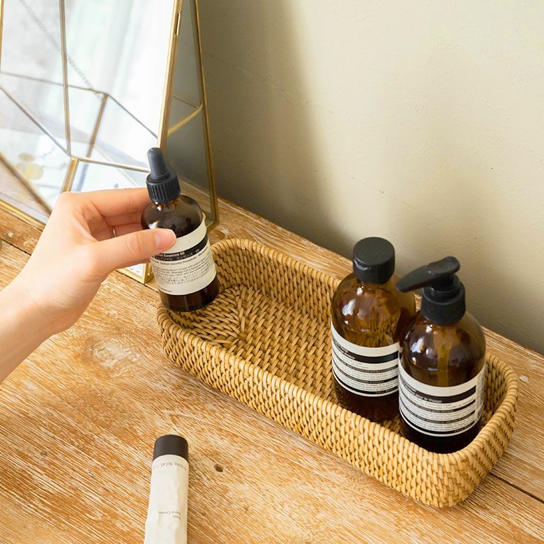 かご 籠 カゴ モダン 収納 ストッカー ホテル カフェ トレイ トレー Sサイズ ボックス ケース ラタン 籐 ホワイト ナチュラル 約 W 25.5cm D 10cm H 5cm [13978]【 アメニテトレイ カトラリートレイ ペントレイ 小物 用品 入れ キッチン ダイニング カトラリー アメニティ 北欧 リゾート コースタル バリ アジアン 雑貨 】