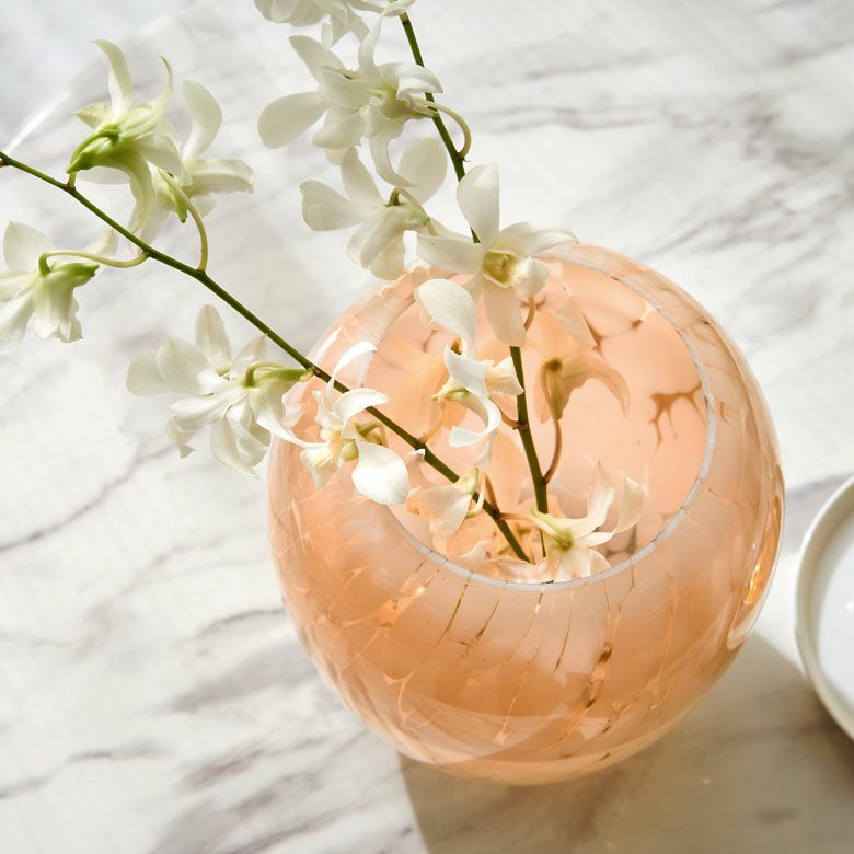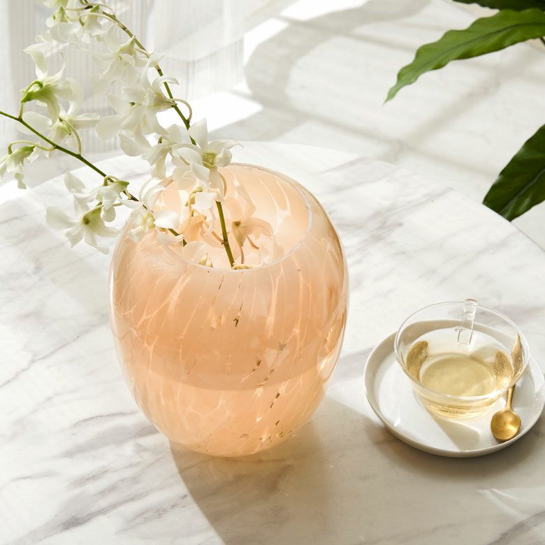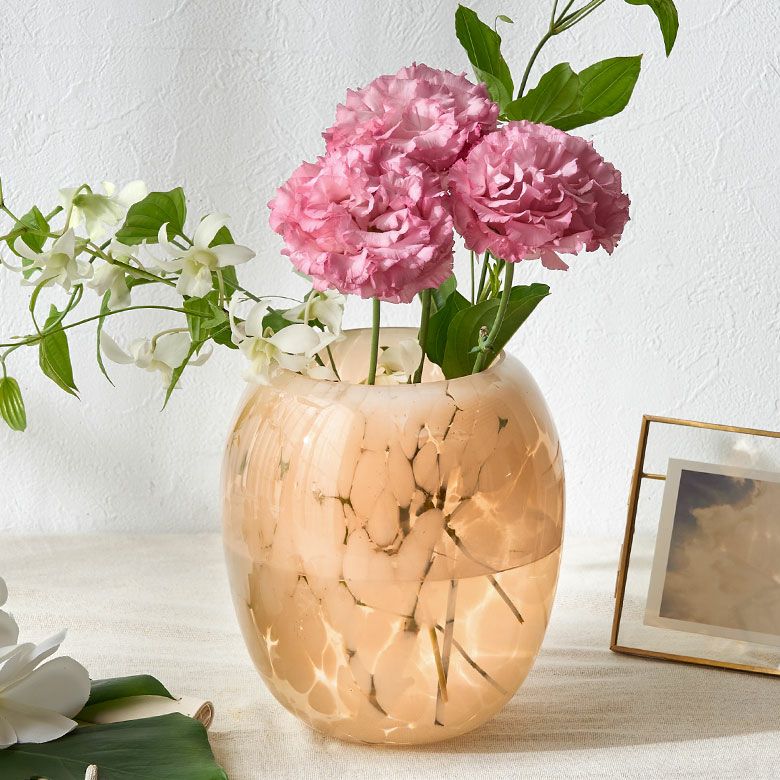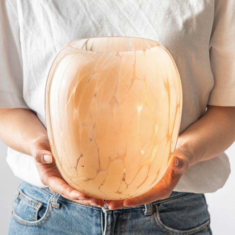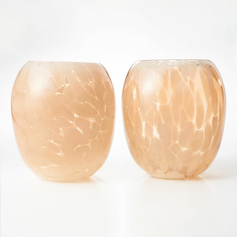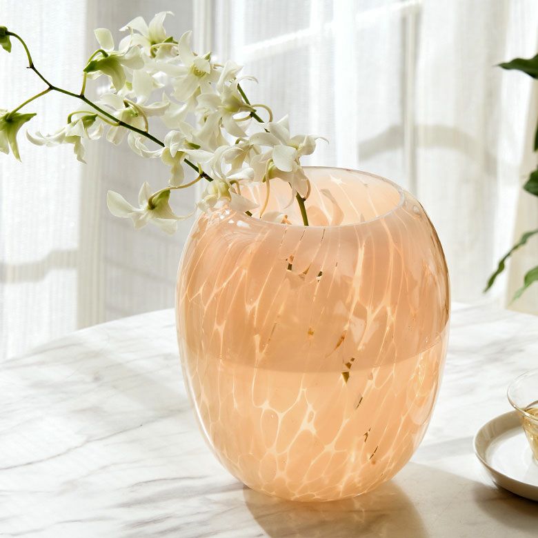 デザイン花瓶 びいどろ 風 ガーデン用品 ピンクベージュ 玄関 花瓶 ガラス 半透過 ピンク ベージュ ドット柄 上径10.5cm壺型 つぼ型 約 W17.5 × D 17.5 × H20 cm フラワーベース 花びん 花器 ガラスベース ガラス花びん 生花 ドライフラワー おしゃれ 北欧 韓国 インテリア アジアン 雑貨 アジアン雑貨 [67096]