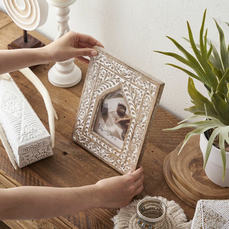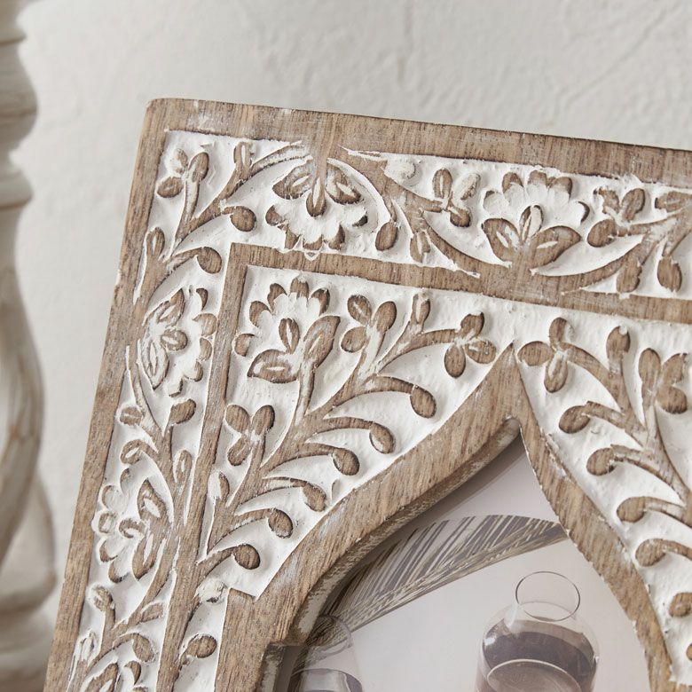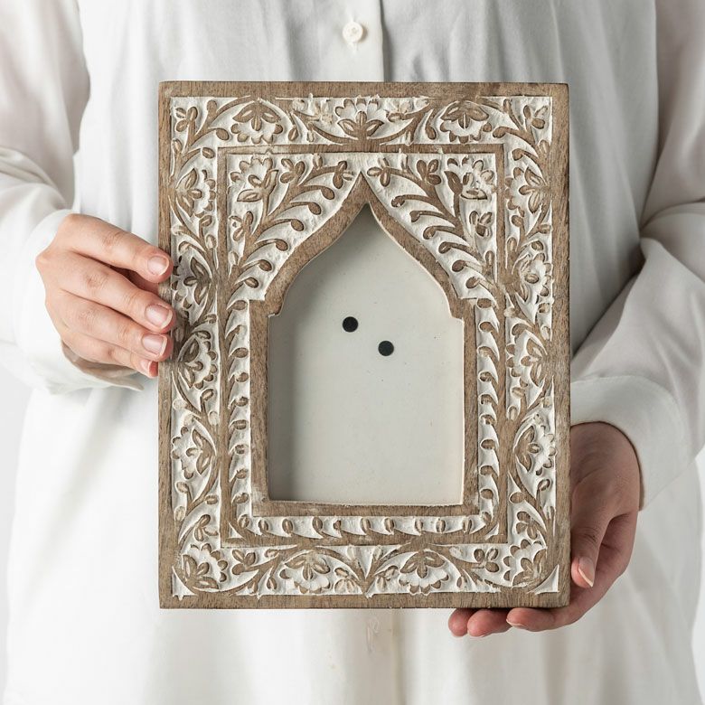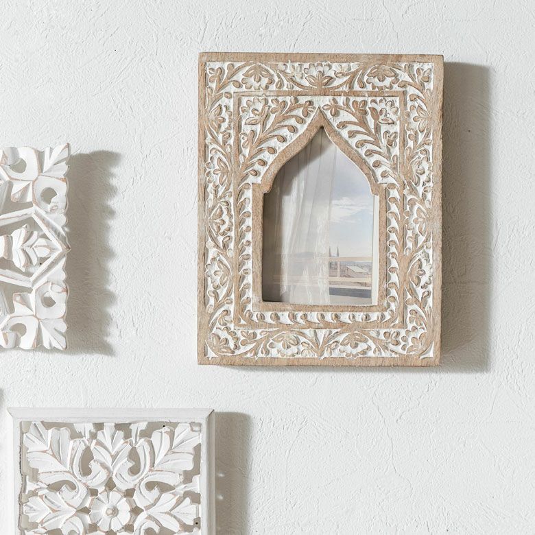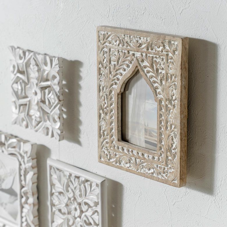 カードフレーム かわいい 可愛い 卓上 立て掛け 推し リゾート フォトフレーム 写真立て 木彫り 木製 マンゴーウッド モロッカンアーチ 縦置き 横置き L判 ポストカードサイズ 約W19 × D2 ×H24cm フォトスタンド 壁掛け 写真たて ウォールデコレーション ホワイトウォッシュ おしゃれ 北欧 韓国 モロッカン アジアン雑貨 [34562]