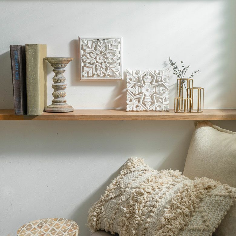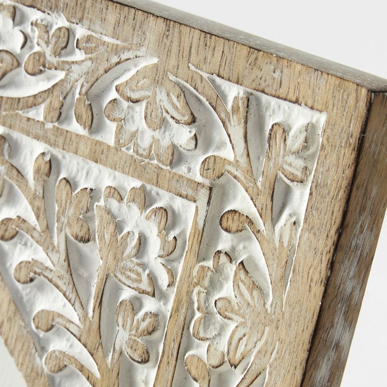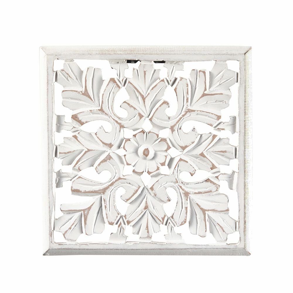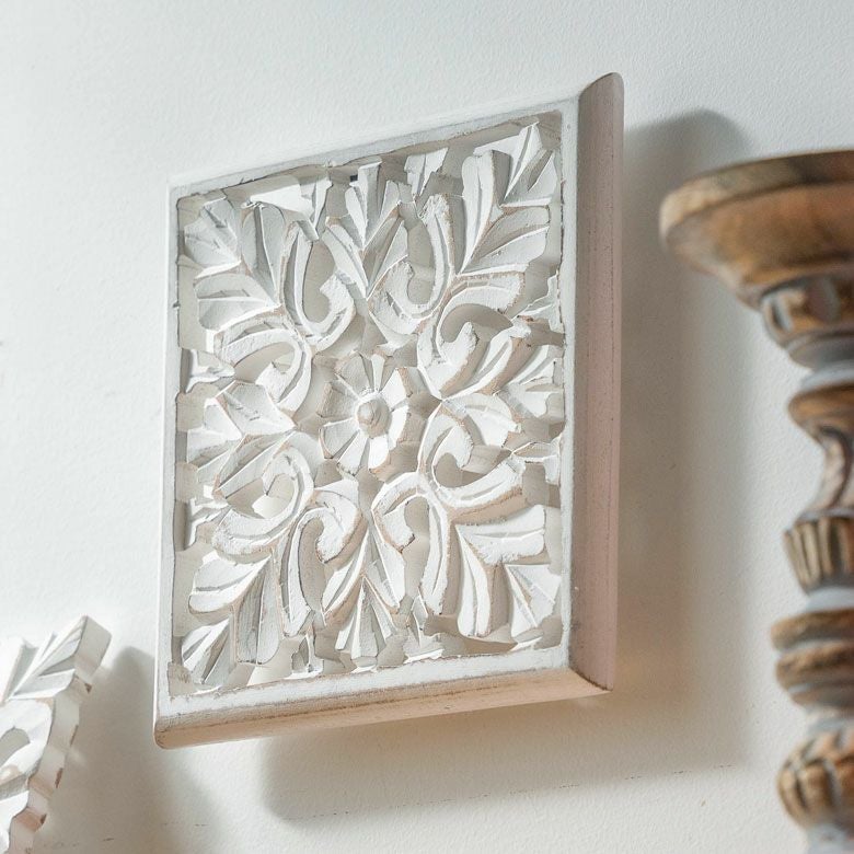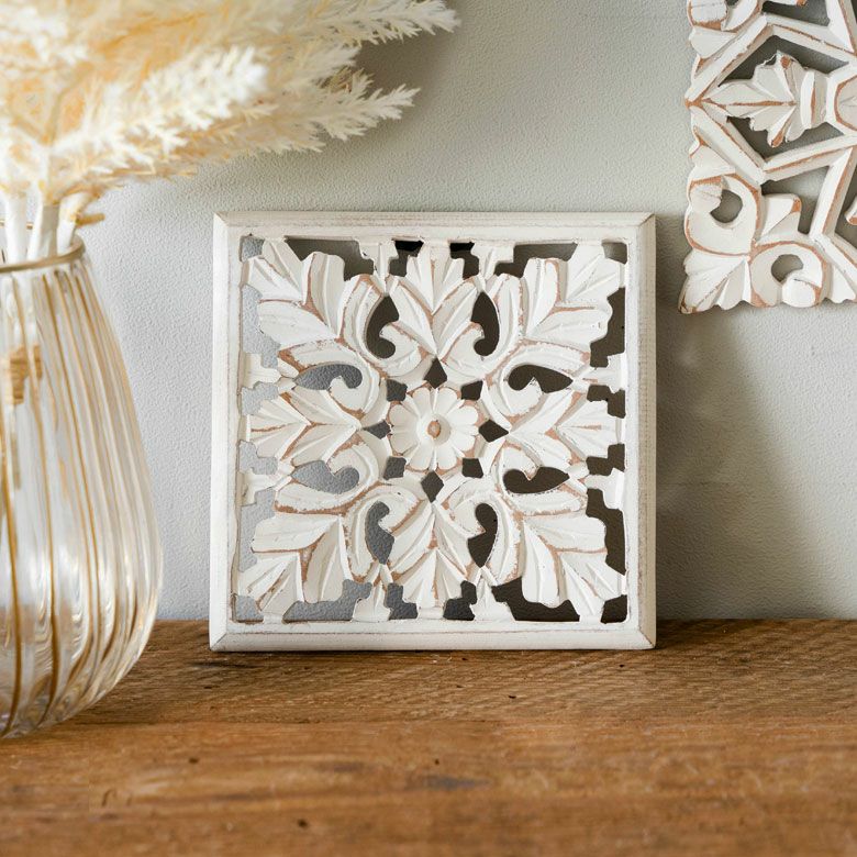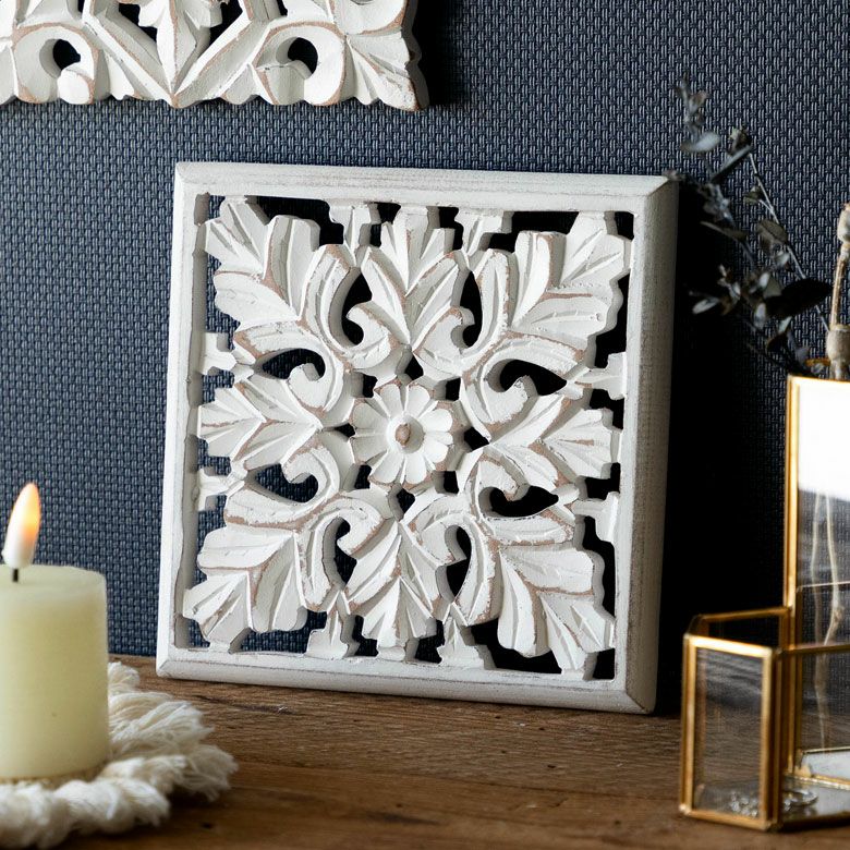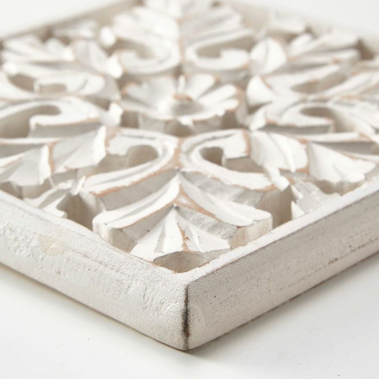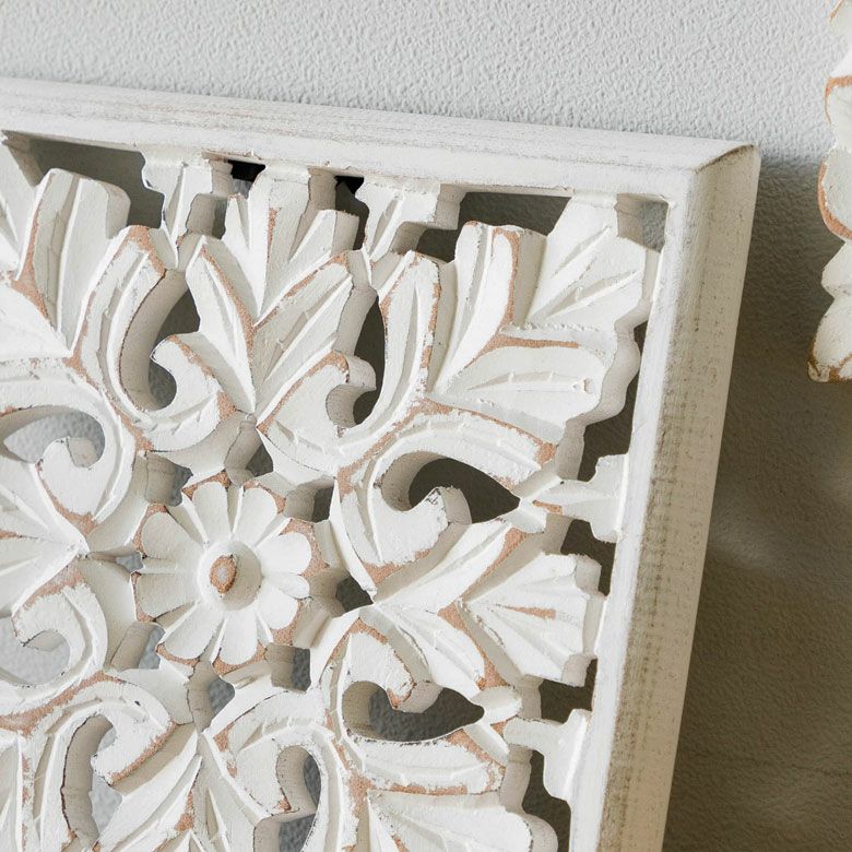 南国 リゾートインテリア パネル オブジェ 立て掛け 木彫り レリーフ 壁掛け コリント 白 ホワイト インド製 正方形 約 W 16 × D 16 × H 1.5 cm ウッドカービング アートパネル 木彫刻 壁飾り アジアンレリーフ ウォールデコレーション おしゃれ バリ島 バリ雑貨 北欧 アジアン 雑貨 アジアン雑貨 ハワイアン雑貨 [34560]