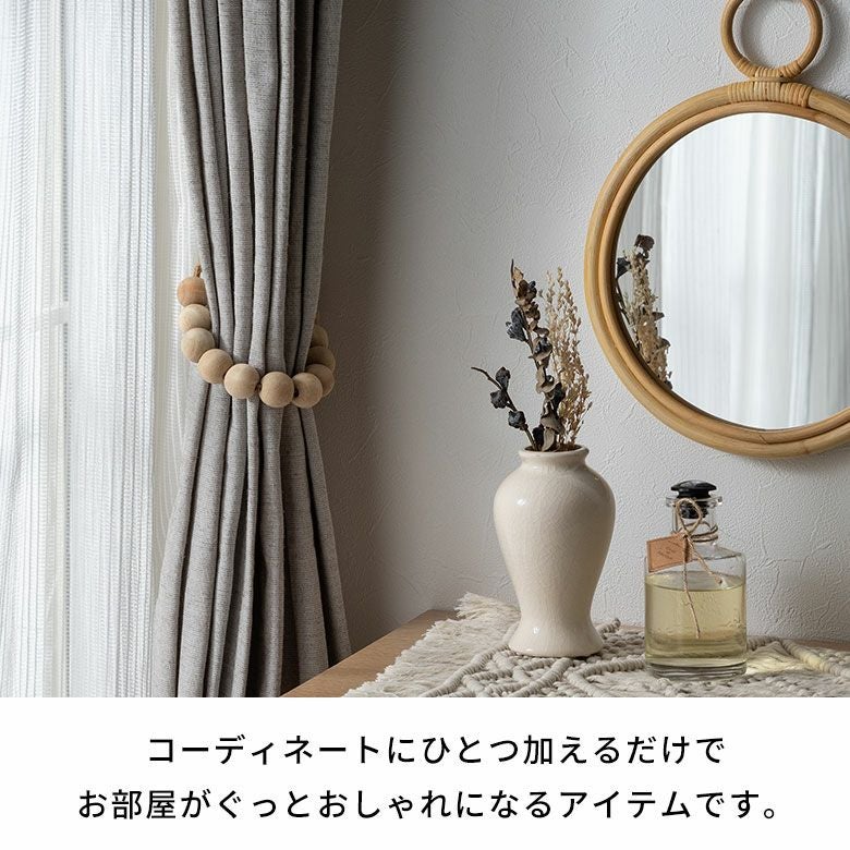 シンプル 留め具 カーテンホルダー オブジェ 什器 店舗 レストラン カフェ ホテル ドレープ留め ドレープ アクセサリー 模様替え エスニック モダン カーテン止め 海外インテリア カーテンタッセル ウッドボール カーテン留め 2本セット ウッド 木製 天然木 合皮 フェイクレザー 約 W 50cm D 2.5cm H 2.5cm カーテン タッセル 留め ホルダー 1組セット ナチュラル 天然素材 カーテン留め具 おしゃれ 北欧 リゾート 雑貨 インテリア アジアン [34620]